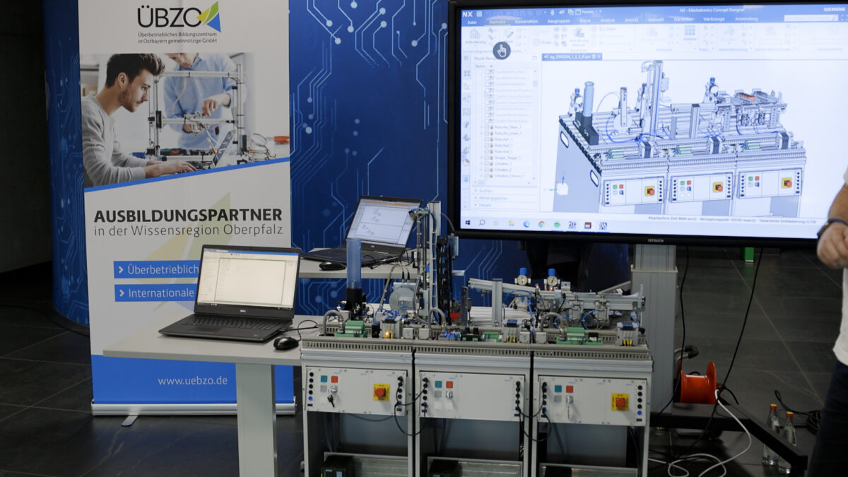 Auch BHS-Partner ÜBZO ( Überbetriebliches Bildungszentrum in Ostbayern) präsentiert sich an diesem Tag natürlich auf der Inhousemesse. Neben allgemeinen Infos über das Ausbildungsunternehmen lässt ÜBZO-Mitarbeiter Georg Stock einen Roboter das Strategiespiel “Tic-Tac-Toe” vorführen. Weitere Stände haben C4TRENDS (2022 aus dem ÜBZO heraus gegründet) mit seinen Kompetenzen Weiterbildung und Digitale Bildung, die Blue Devils-Nachwuchsabteilung mit Jens Maschke oder die LUCE-Stiftung aufgebaut. Begehrtes “Giveaway”: die kleinen Namensschilder aus Holz von Daniela Lößl von der “Trendschmiede 25”. An kleinen Geschenken der Aussteller wie Kulis, Blöcke oder anderen nützlichen Dingen fehlt es ebenso wenig an diesem Donnerstagnachmittag wie an vielen interessanten Informationen.