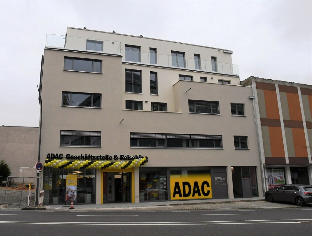 Im Erdgeschoss des modernen, vierstöckigen Neubaus befindet sich die offen und hell gestaltete Geschäftsstelle mit Reisebüro. Die Mitarbeiterinnen und Mitarbeiter des ADAC Nordbayern stehen den Kunden von Montag bis Freitag von 9 Uhr bis 18 Uhr sowie am Samstag von 9 Uhr bis 13 Uhr mit Rat und Tat zur Seite. In den oberen Stockwerken befinden sich Mietwohnungen.