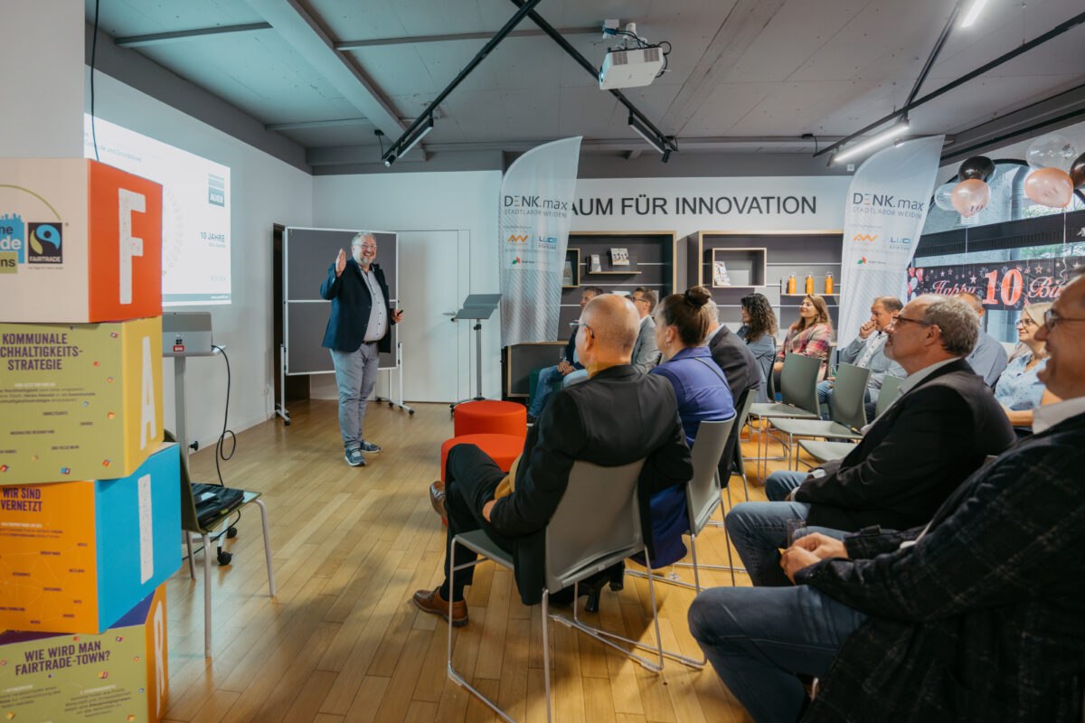 Die Auer Facility Management GmbH feierte im DENK.max in der Dr.-Pfleger-Straße. Besonderer Gast: Christian Engel, Geschäftsführer der BHS Corrugated. Dessen Unternehmen war es, das 2014 letztlich die Initialzündung für die Firmengründung von Auer gab. Zuvor hatte Auer ab 1987 Maschinenbaukonstrukteur in Weiherhammer gelernt, legte dann ein Architekturstudium darauf (“Wenn ich mal nicht mehr bin, sollen meine Projekte noch sichtbar sein”) und war zunächst für Gerresheimer tätig.