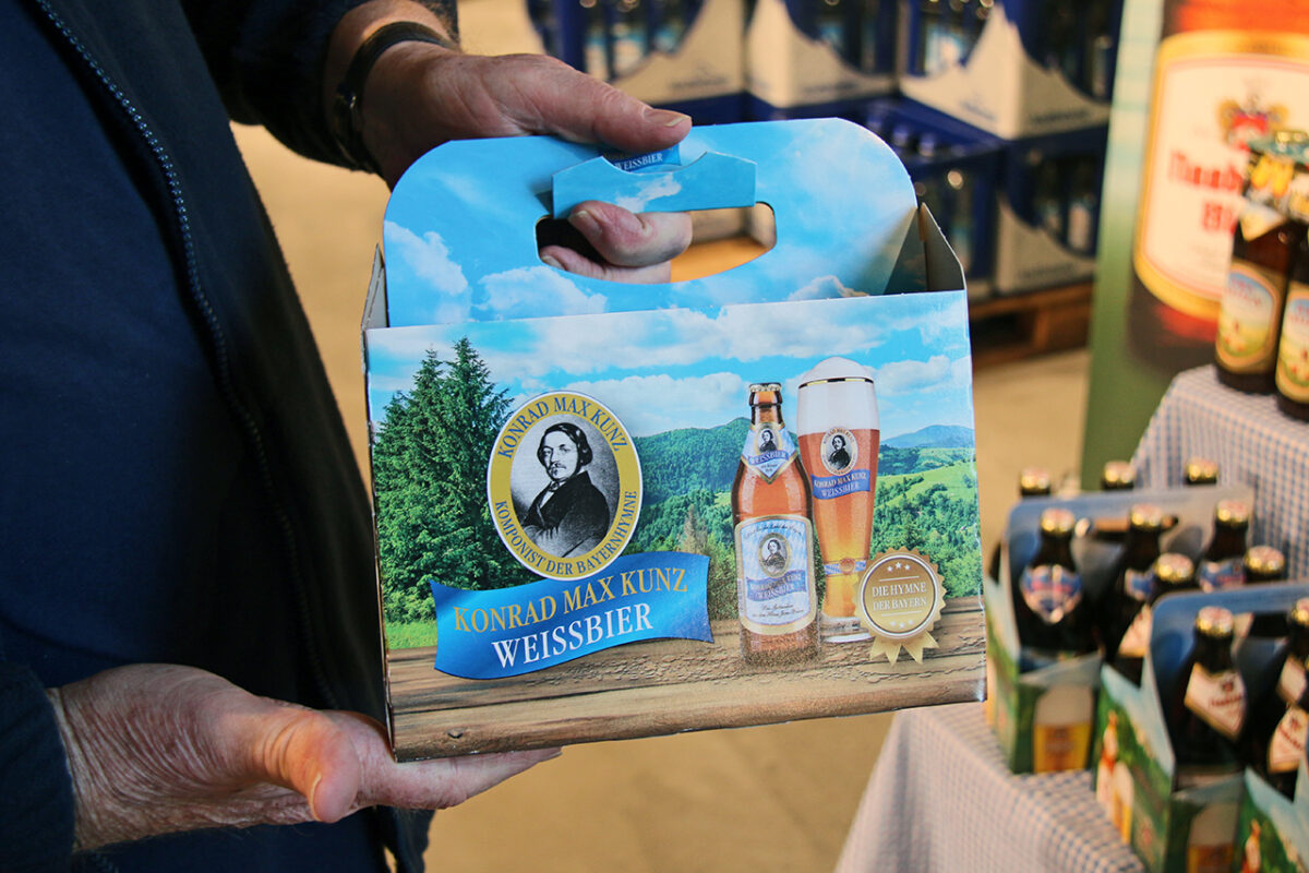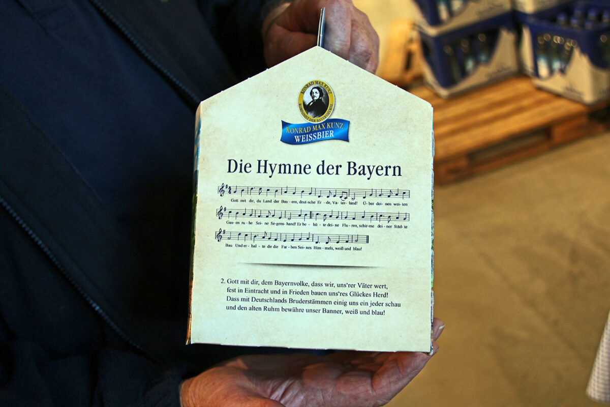 „Kennen’S den da“, zeigt Graf fragend auf das Etikett mit dem Porträt eines ondulierten Herrn aus dem 19. Jahrhundert. „Das ist unser Konrad-Max-Kunz-Weißbier.“ Benannt nach dem Komponisten der Bayernhymne. „Lernen’S a bisserl Geschichte, Herr Reporter, dann wissen’S, wie sich das alles zugetragen hat.“ Und deshalb gibt für den Sixpack im Karton einen Aufdruck mit Text und Noten unseres bayerischen Liedes vom „Vater des deutschen Männergesangs“.