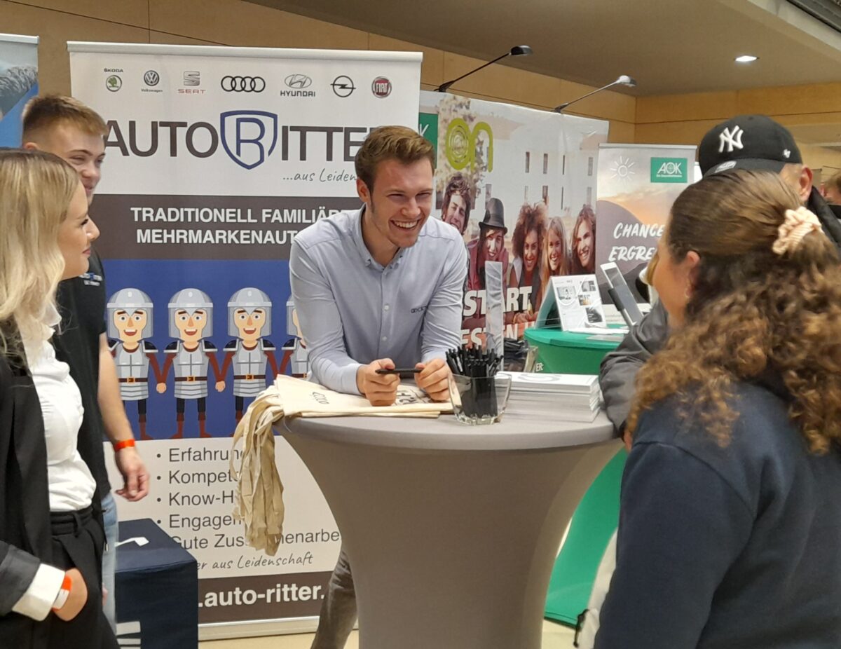 „Nutzt die Chance und stellt Fragen“, forderte der Schirmherr die Jugendlichen auf, um ihnen den Weg in ihre berufliche Zukunft zu weisen. Rund 250 Jugendliche und junge Erwachsene folgten diesem Ruf, begleitet von Familienangehörigen und weiteren Interessierten. Die Messe bot auch für Arbeitssuchende eine gute Gelegenheit, sich einen Überblick über Arbeitsmöglichkeiten und Firmen aus der Region zu verschaffen. Über 60 regionale Betriebe aus Handwerk, Industrie, dem sozialen Sektor und dem Gewerbe präsentierten sich und zeigten eine Vielfalt an Ausbildungsmöglichkeiten und Dualen Studiengängen.