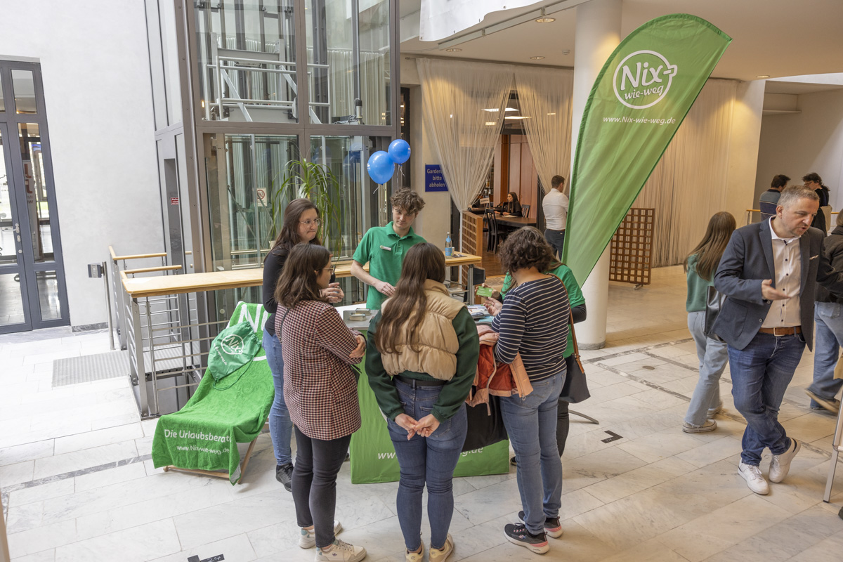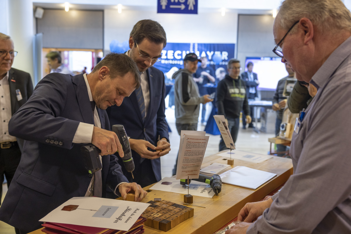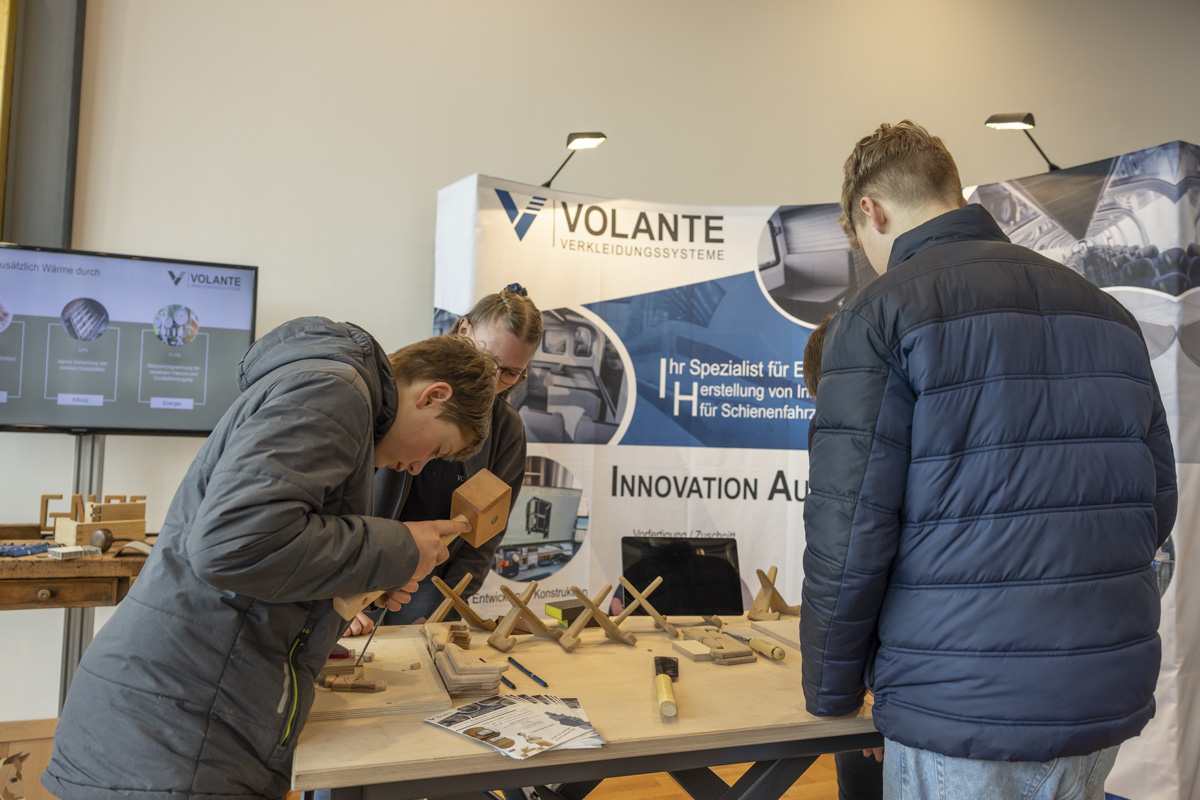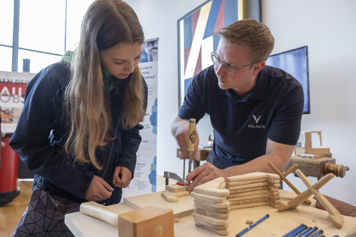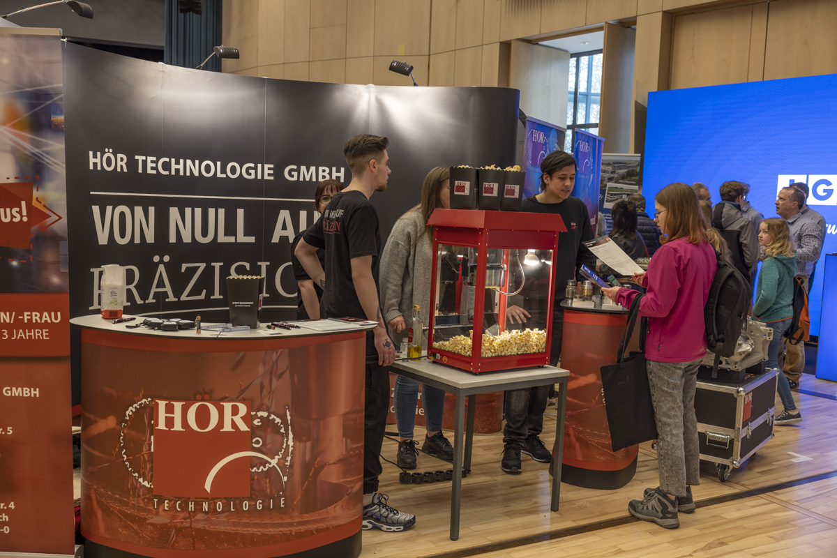 Neben der Möglichkeit, sich ausführlich über das Ausbildungsangebot zu informieren und direkt mit Vertretern der Unternehmen in Kontakt zu treten, konnten die Besucher auch selbst in verschiedene Berufsfelder eintauchen. Interessierte durften Haare stylen und schneiden, Holzwerkstücke bearbeiten, Maschinen bedienen oder in die digitale Welt abtauchen. Bei der Ausbildungsmesse war alles möglich. Eine große Fülle an Informationsmaterialien und nicht wenige Werbegeschenke rundeten das Messeerlebnis ab.