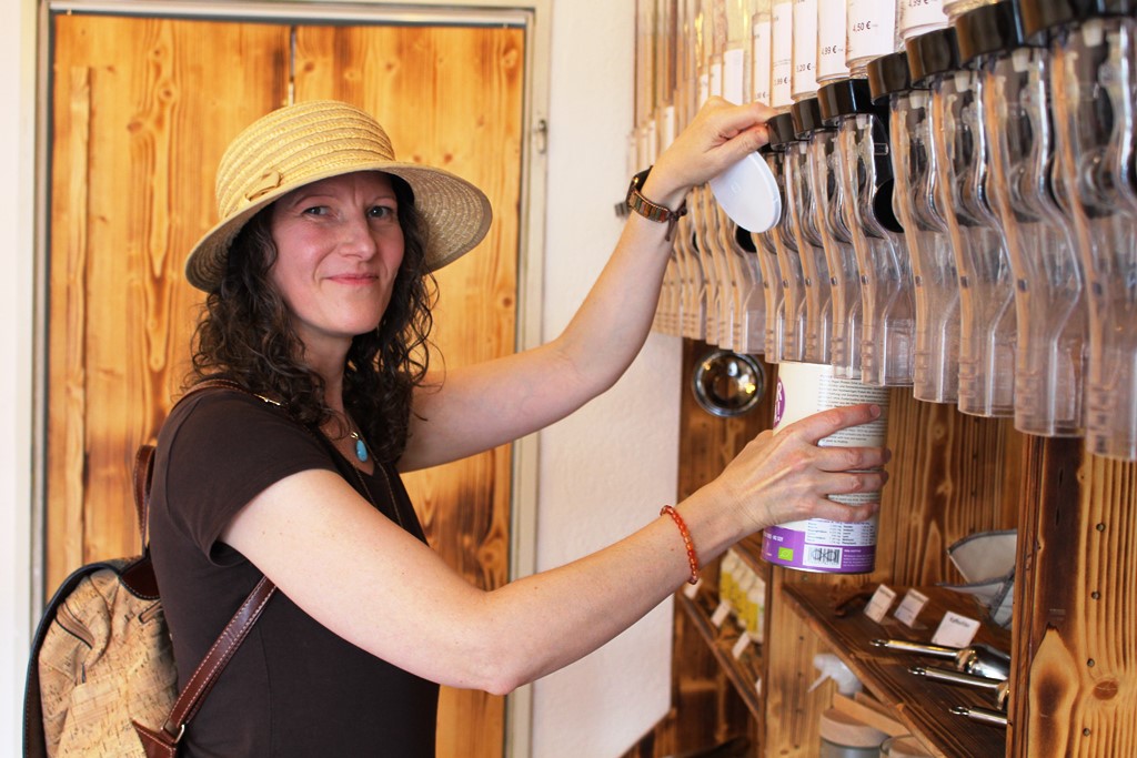 Denn der “Nackte Frosch” hat eine feste Fangemeinde, die fest hinter dem plastikfreien Konzept steht. Eine davon ist Tina Hartung. “Wir kaufen nur hier”, erzählt die Lehrerin aus Waldsassen. Betrachte man die Preissteigerungen in anderen Märkten und rechne man die Plastikverpackung mit, sei der Unverpacktladen billiger als andere. Auch spare sie beim Müll, die vierköpfige Familie habe nur eine kleine Mülltonne. “Jetzt sind wir aufgeschmissen”, sagt sie. Die nächste Möglichkeit sei in Nürnberg. Doch da müsse sie wieder Auto fahren. “Wir müssen wieder zurück nach Hersching ziehen. Da gibt es noch einen Unverpacktladen”, ruft sie und packt weiter Waschsoda in große Gläser.