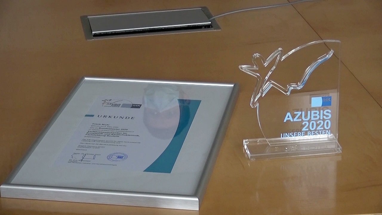Eschenbach. Man merkt es allen an: Sie sind mächtig stolz. Frank Nickl hat als bester Azubi Deutschlands jetzt offiziell einen Pokal und eine Urkunde ausgehändigt bekommen.