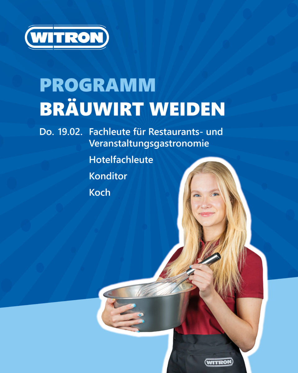 Dein Weg in die Zukunft beginnt bei WITRON. Im Rahmen der Schnuppertage hast du die Möglichkeit, ganz unterschiedliche Arbeitsbereiche kennenzulernen – ob kaufmännisch, technisch oder gastronomisch. So bekommst du ein realistisches Bild davon, welche Aufgaben zu dir passen und wo deine Stärken liegen. Oft eröffnen sich dabei auch neue Perspektiven, an die man vorher gar nicht gedacht hätte. Jetzt direkt anmelden!