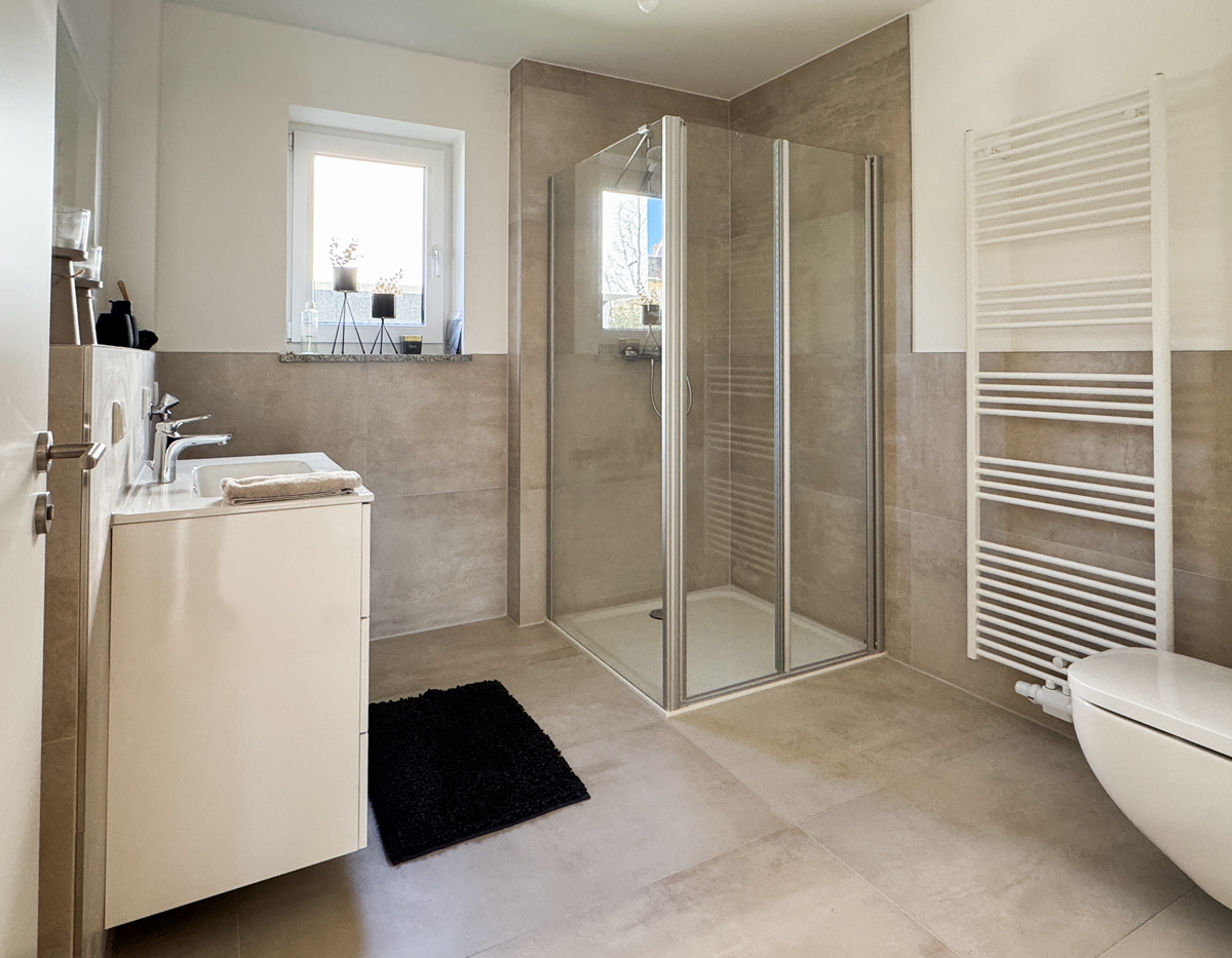 Zum Einsatz kommen eine zentrale Wärmepumpe, Fußbodenheizung in allen Räumen und eine hochwertige Gebäudehülle in Ziegelbauweise mit einer Kombination aus elektrischen Rollläden und Raffstoren zur Beschattung. „Ergänzt wird das Konzept durch eine dezentrale Lüftungsanlage in den Wohnungen. Durch die dauerhafte Luftzirkulation entsteht ein angenehmes Raumklima – unabhängig von der Jahreszeit. Für Sie bedeutet das: mehr Komfort, Langlebigkeit und gleichzeitig planbare, niedrige Energiekosten“, so Daniel Dirnberger weiter.