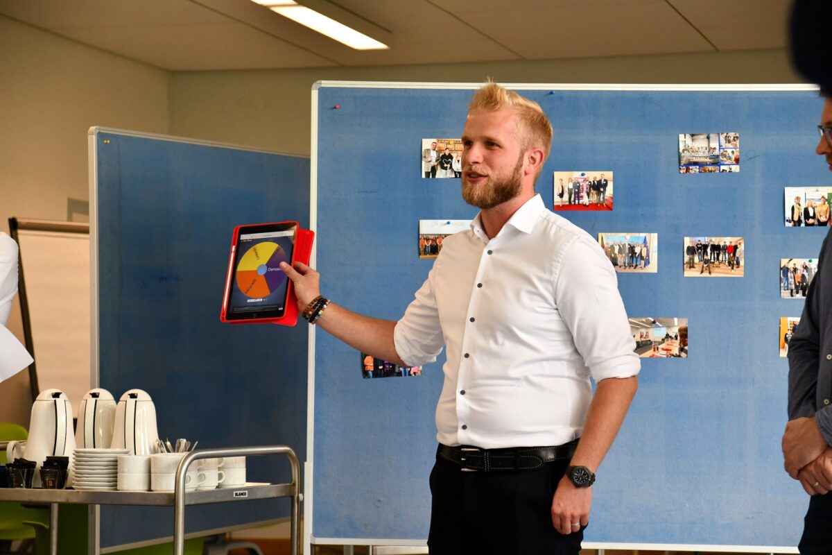 Die Schulleiterin der Europa-Berufsschule Martina Auer-Bertelshofer brachte es auf den Punkt: „Wir bieten hier in der Europa-Berufsschule die Plattform Schule und Wirtschaft zusammenzubringen, vom Förderschüler bis zum Abiturienten“. Die Anwesenden durften im weiteren Verlauf ein Glücksrad drehen, um in die drei verschiedenen Workshops zu gelangen.