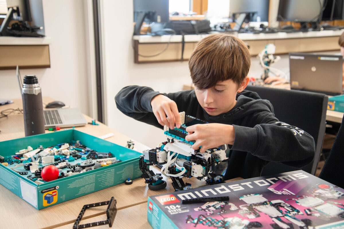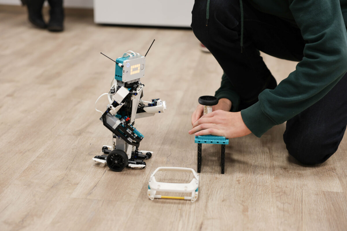 Am ersten Tag wird der Roboter zusammengebaut. Insgesamt stehen fünf verschiedene Modelle zur Auswahl, darunter ein Roboterhund, ein Sportroboter und der lustige „Charlie“.