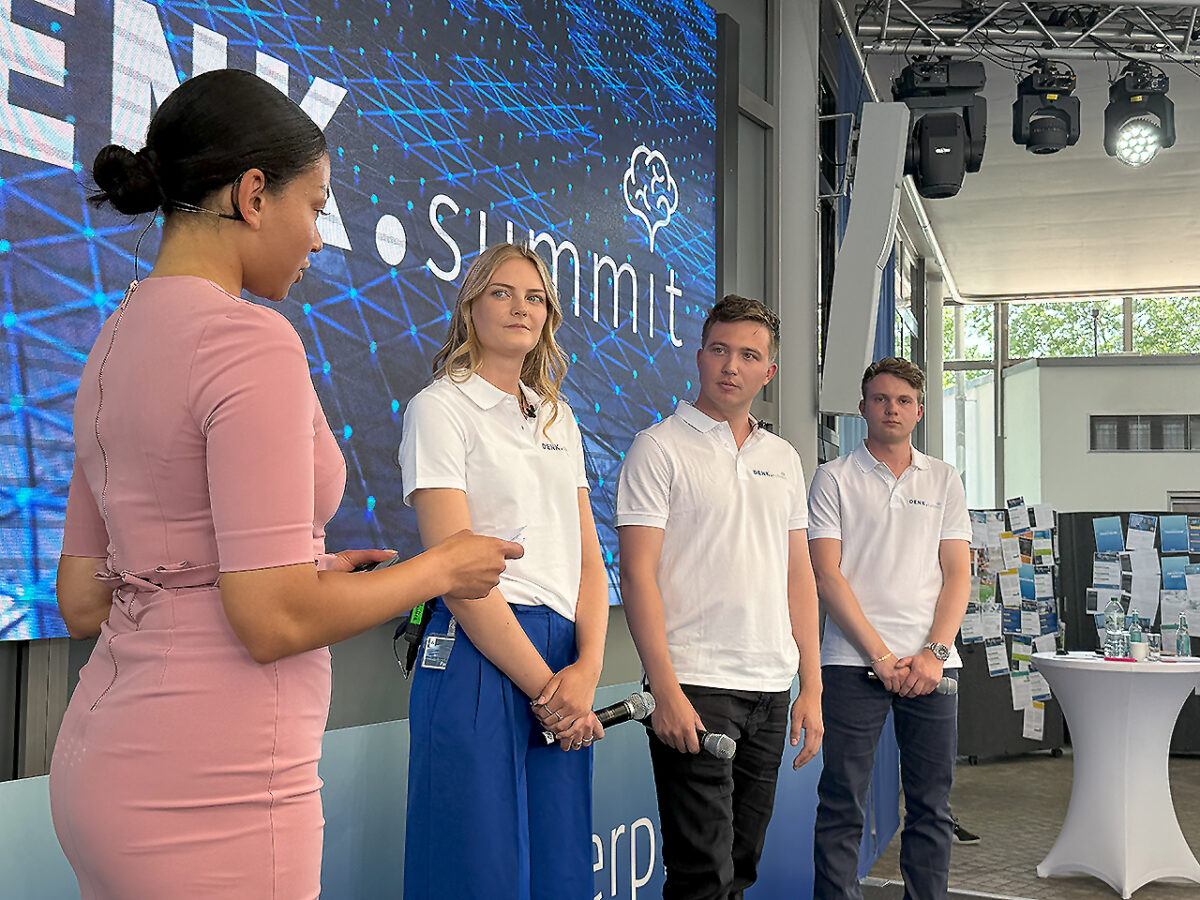 Pauline, Thomas und Julian Engel sind das Role-Model für die Gründer, die im Anschluss an die Speaker ihre Geschäftsidee in nur fünf Minuten auf den Punkt bringen müssen: jung, aufgekratzt, entschlossen. Mit jedem weiteren DENK.summit wachsen sie ein Stück weit in die großen Schuhe der Unternehmerfamilie Engel hinein.