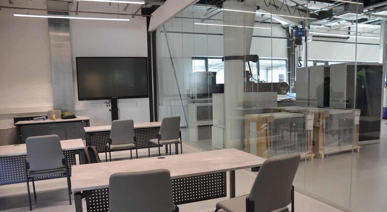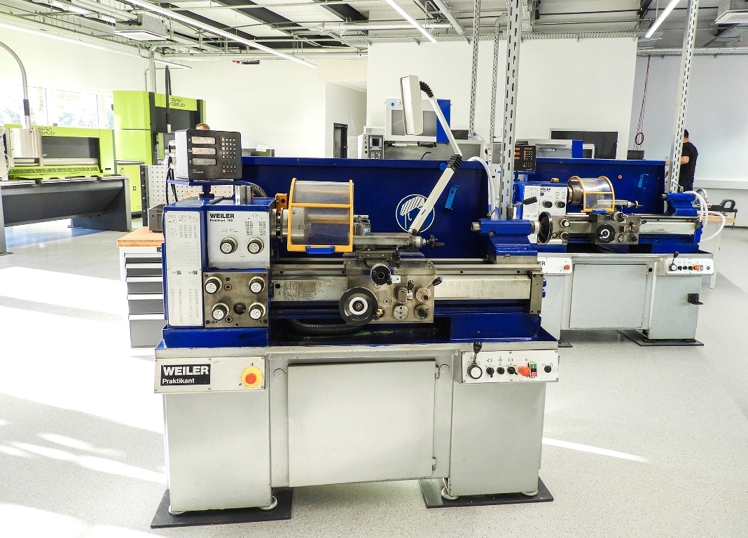 In den modernen und hellen Schulungsräumen, die zukünftig auch für Weiterbildungen genutzt werden, lernen die Fachkräfte von morgen das theoretische Wissen und arbeiten eigenständig oder in Teams an Projektarbeiten und Aufgaben, ehe es im digitalisierten Maschinenpark an die praktische Umsetzung geht.