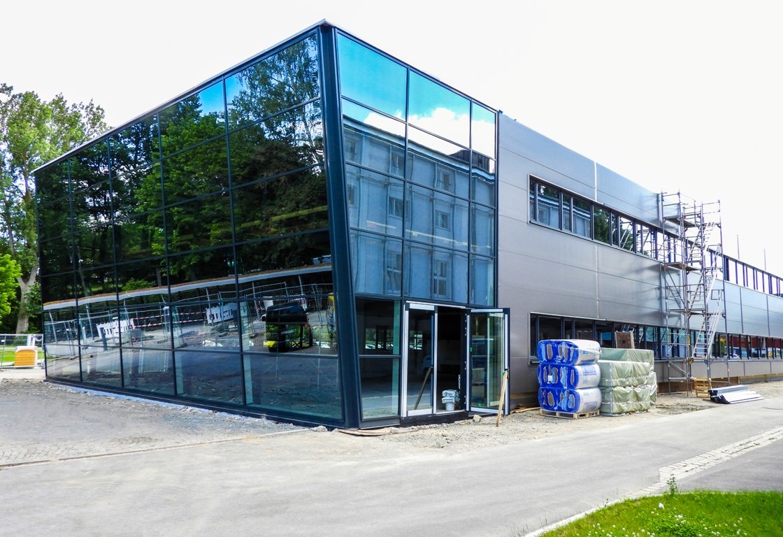 Jetzt konnte der zweite Bauabschnitt mit Gebäude „Edmund“ fertig gestellt werden. In diesem Gebäude, mit einer Länge von etwa 110 Metern, ist auf zwei Stockwerken die neue ÜBZO-Ausbildungswerkstatt zu finden. Auf einer Fläche von etwa 3.300 Quadratmetern sind die Bereiche Metall und Elektro untergebracht. Pünktlich zum neuen Ausbildungsjahr konnte der Ausbildungsbetrieb hier starten.