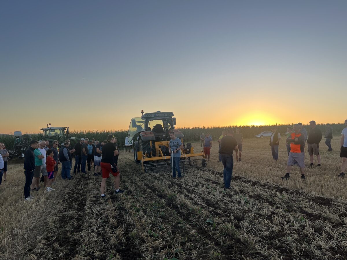 Ein Höhepunkt war die Maschinenvorführung von Leon Miederer von der Firma Agrisem: Mit Tiefenlockerer und Direktsaatgerät demonstrierte er anschaulich, wie moderne Technik im Betrieb funktionieren kann. Zahlreiche Teilnehmer drängten sich nahe ans Feld, um genau zuzusehen – viele diskutierten anschließend im kleinen Kreis über mögliche Einsatzbereiche.