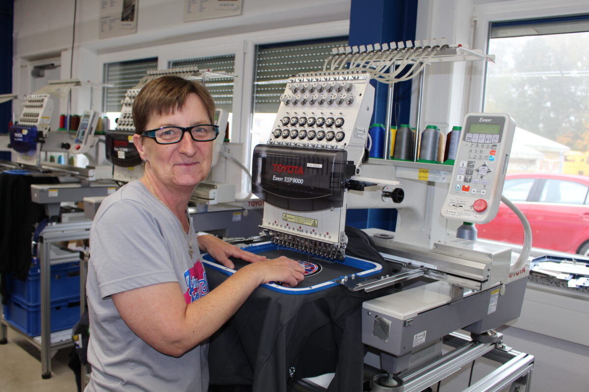 Und switchen muss sie auch sprachlich. Gerade kommt eine US-Amerikanerin rein. Sie erkundigt sich in breitestem amerikanisch-englisch, wann man die bedruckten Sweatshirts für eine Schulklasse abholen kann. Der mittelständische Betrieb mit seinen 20 Mitarbeiterinnen und Mitarbeitern lebt auch von den in Grafenwöhr stationierten US-Streitkräften. Sie machen rund 50 Prozent der Kundschaft aus.