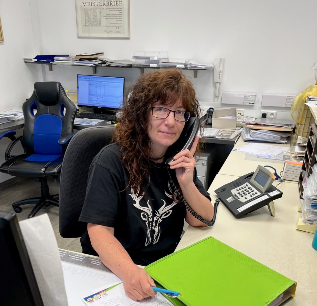 “Tanja, weißt du, ob die Jacke schon fertig ist?” Tanja nickt. “Müsste fertig sein, sie hängt dort hinten.” Tanja Hutzler weiß über jeden noch so kleinsten Auftrag genau Bescheid. Die Geschäftsführerin der Druckerei Hutzler ist ein Wirbelwind. Sie switcht zwischen Telefon, Produktionshalle und Verkaufstresen hin und her.