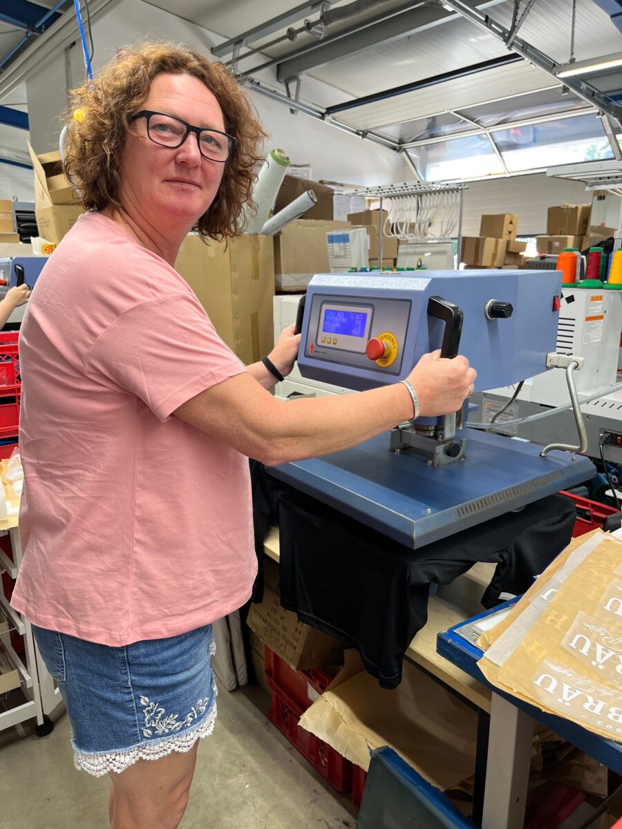 Die Corona-Pandemie hatte bei Hutzler die Maschinen still stehen lassen. “Es gab fast nichts mehr zu tun”, erzählt die Chefin. Doch sie hatte die rettende Idee. Anstatt Klamotten zu bedrucken, wurden die dringend benötigten Stoffmasken genäht. Statt Druck- ratterten Nähmaschinen in der Produktionshalle. 15.000 Stück wurden hergestellt und förmlich aus den Händen gerissen. Niemand musste in Kurzarbeit geschickt, oder gar entlassen werden. Vorbei. Die Maschinen sind zwischenzeitlich eingelagert, um sie bei Bedarf wieder rausholen zu können.