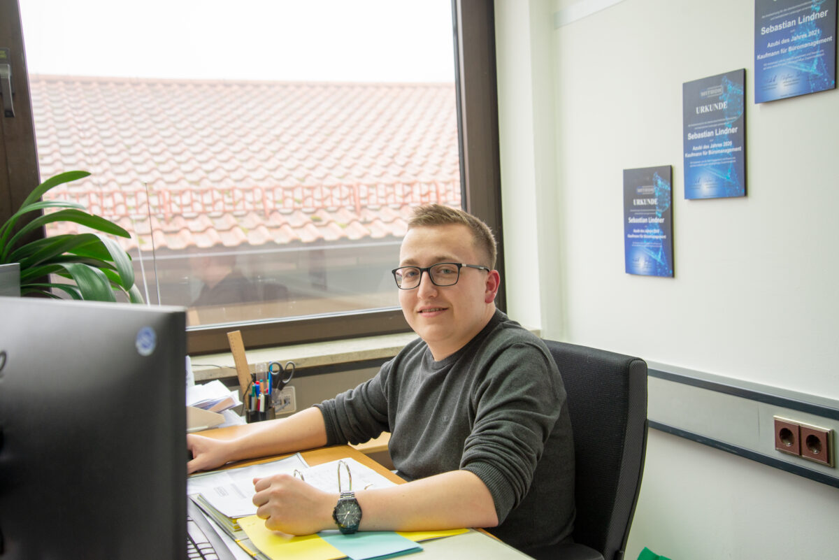 Auch für Sebastian begann 2018 der Ausbildungsernst. Ähnlich wie Anna lernte er die verschiedensten Abteilungen kennen, darunter auch den Bereich Zoll/Export. Und der hat es ihm richtig angetan. “Die Kollegen sind top und das ganze Arbeitsumfeld ist einfach spitze”, schwärmt er. Und er hatte Glück. Sebastian kann nach seiner Lehrzeit fest dort bleiben. Er kümmert sich um die Zoll- und Importpapiere, den Gefahrgutversand, die Luftsicherheit und die administrative Rechnungsprüfung. “Abwechslungsreich und lustig”, das fällt ihm spontan ein, wenn er auf seine Lehrzeit zurückblickt. Und was er bemerkenswert findet: “Du hast bereits früh Verantwortung übernehmen dürfen und dich jederzeit an deinen Ausbilder wenden können.”
