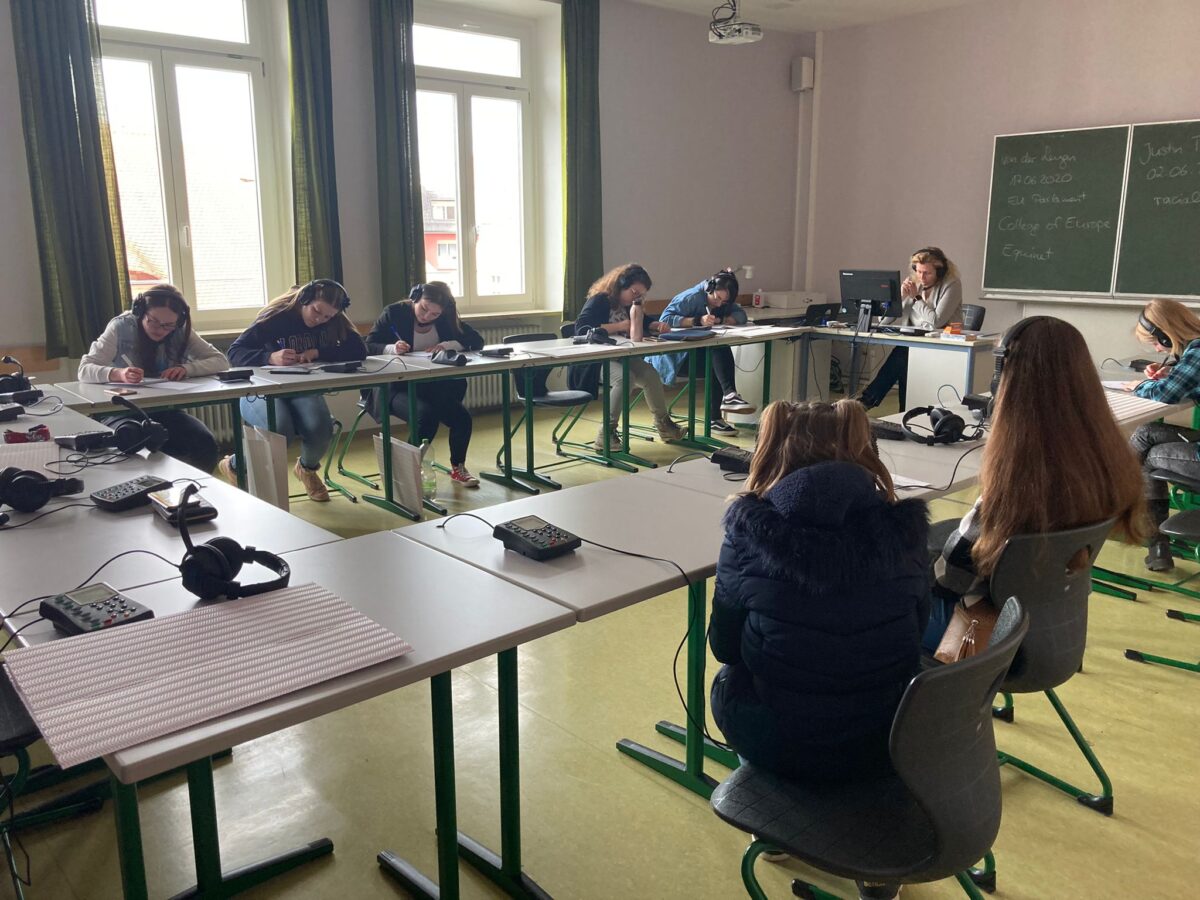 Als Highlight präsentierten die Studierenden der Fachakademie die verschiedenen Formen des Dolmetschens unter Einsatz eines Sprachlabors sowie der Dolmetschkabinen. Geht es insbesondere um mehrsprachige Konferenzen oder Tagungen, dann werden die Vorträge und Reden meist von Simultandolmetschern in andere Sprachen übertragen.