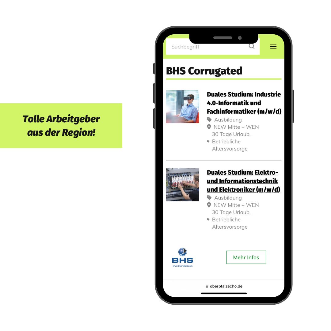 OberpfalzECHO und damit auch die Jobbörse ist in allen Kommunikationskanälen daheim. Ob Website, App, Facebook, News Service, LinkedIn oder Instagram – die Stellenangebote werden in den sozialen Netzwerken zielgruppengenau ausgespielt. Die können dort etwa durch Werbung zusätzlich gepusht werden. Das lohnt sich. “Die Klickzahlen erhöhen sich dadurch bis um das Dreifache”, erläutert Zetzl.