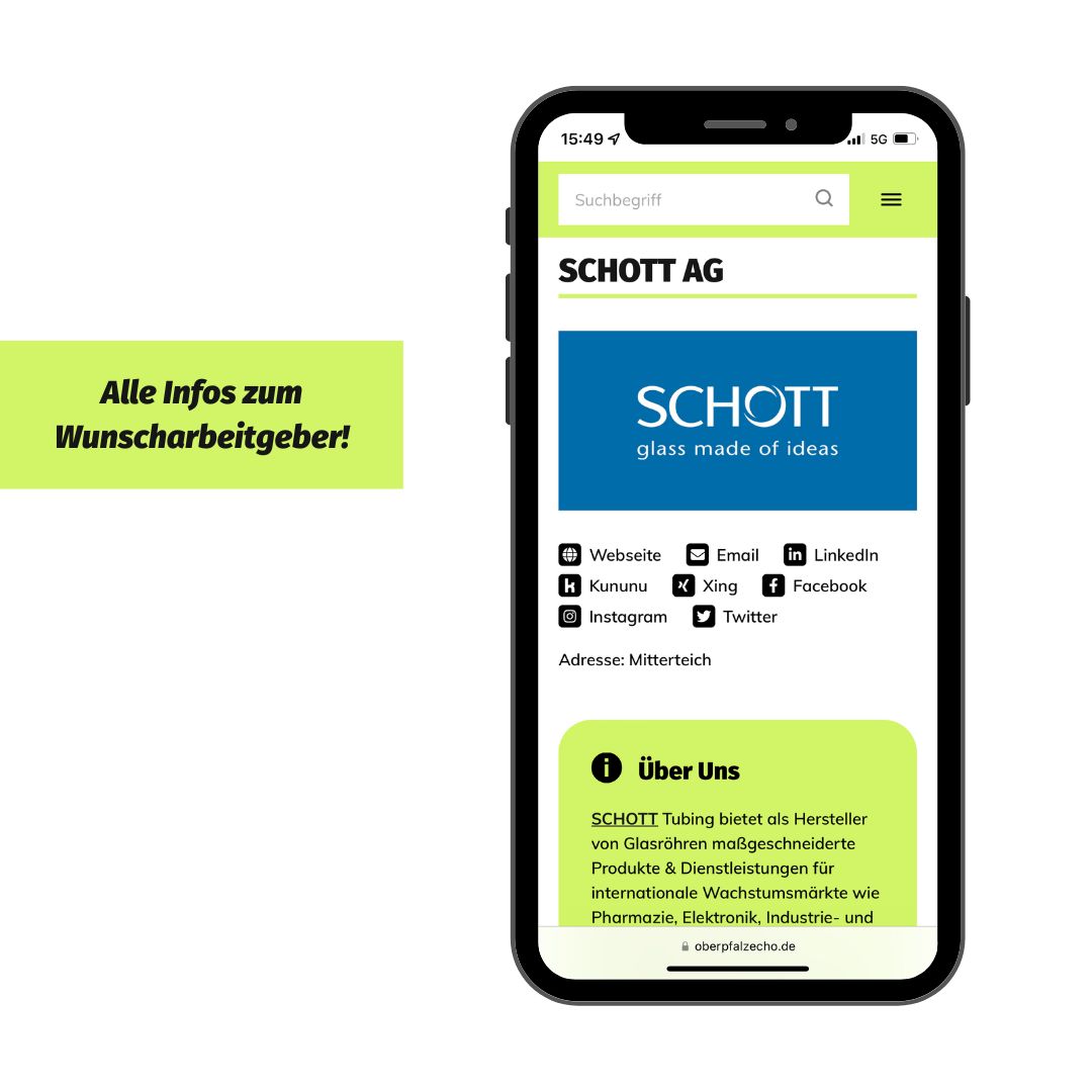 Dank verschiedener Auswahlfenster kannst du schnell ausfindig machen, ob es aktuell den Traumjob vor deiner Haustüre gibt. Und die Jobbörse kann noch mehr. Du erfährst jede Menge über die Firmen. Alle Unternehmensberichte, die die Redaktion von OberpfalzECHO verfasst hat, beziehungsweise erschienen sind, sind mit der Jobbörse verlinkt. Das ist aber längst nicht alles.