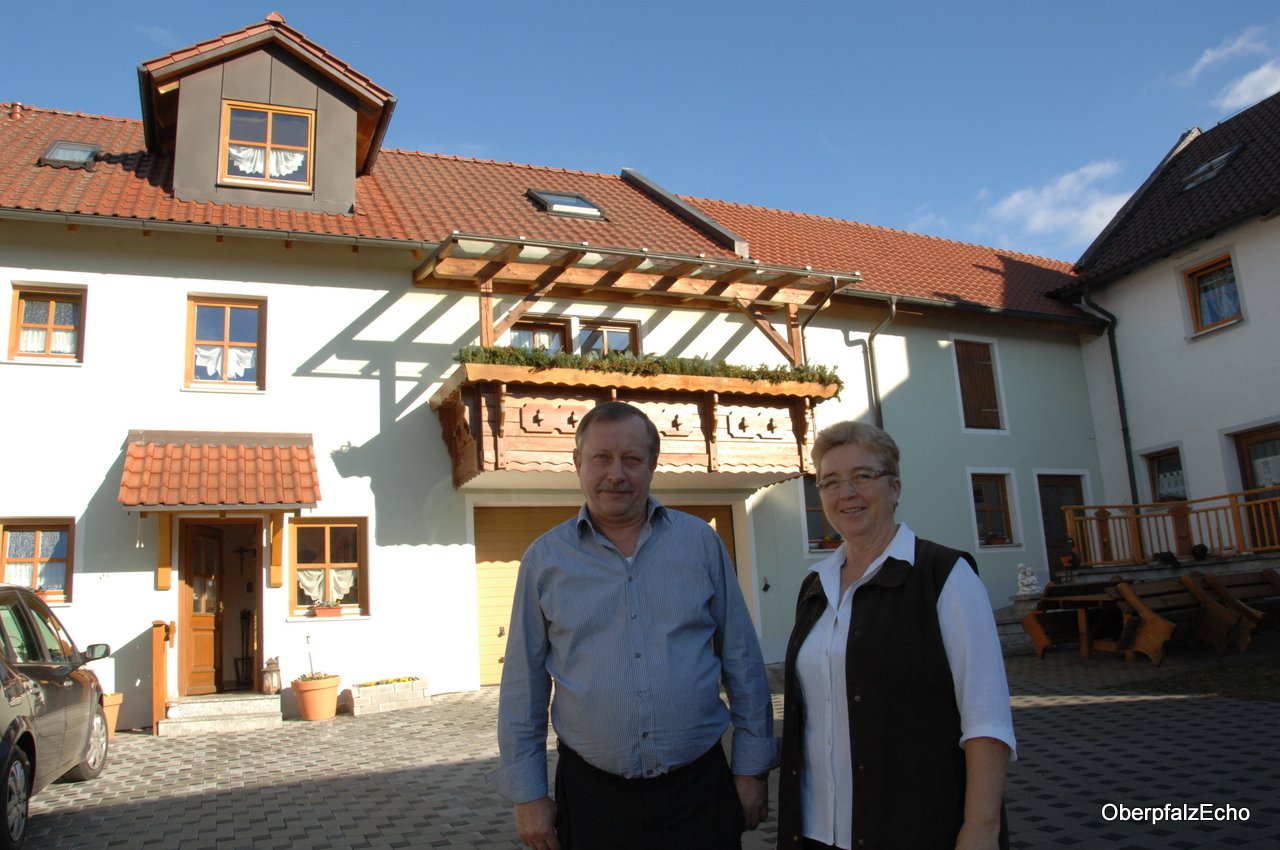 Bei Josef und Nicole Rustler fiel der Entschluss in einen Beherbergungsbetrieb zu investieren im Jahr 2009. Die Mutter von Josef Rustler hatte zwar früher schon einmal Fremdenzimmer vermietet, allerdings nur in kleinerem Umfang. Gute drei Jahre hatte es gedauert, bis der schmucke Vierseithof mit Fachwerkwänden direkt im Ortskern von Neualbenreuth fertigsaniert war. „Wir haben viel in Eigenleistung gemacht“, erinnert sich Josef Rustler. Seine Frau Nicole konnte als gelernte Zimmerin mit anpacken. Die vier Ferienwohnungen und ein Doppelzimmer sind nach dem Ausblick benannt, den man aus den Fenstern genießt. Aus der Wohnung „Sagenbrunnen“ etwa, blickt man auf den Dorfbrunnen, aus der Wohnung Tillenblick sieht man den Tillenberg in der nahen Tschechischen Republik.
