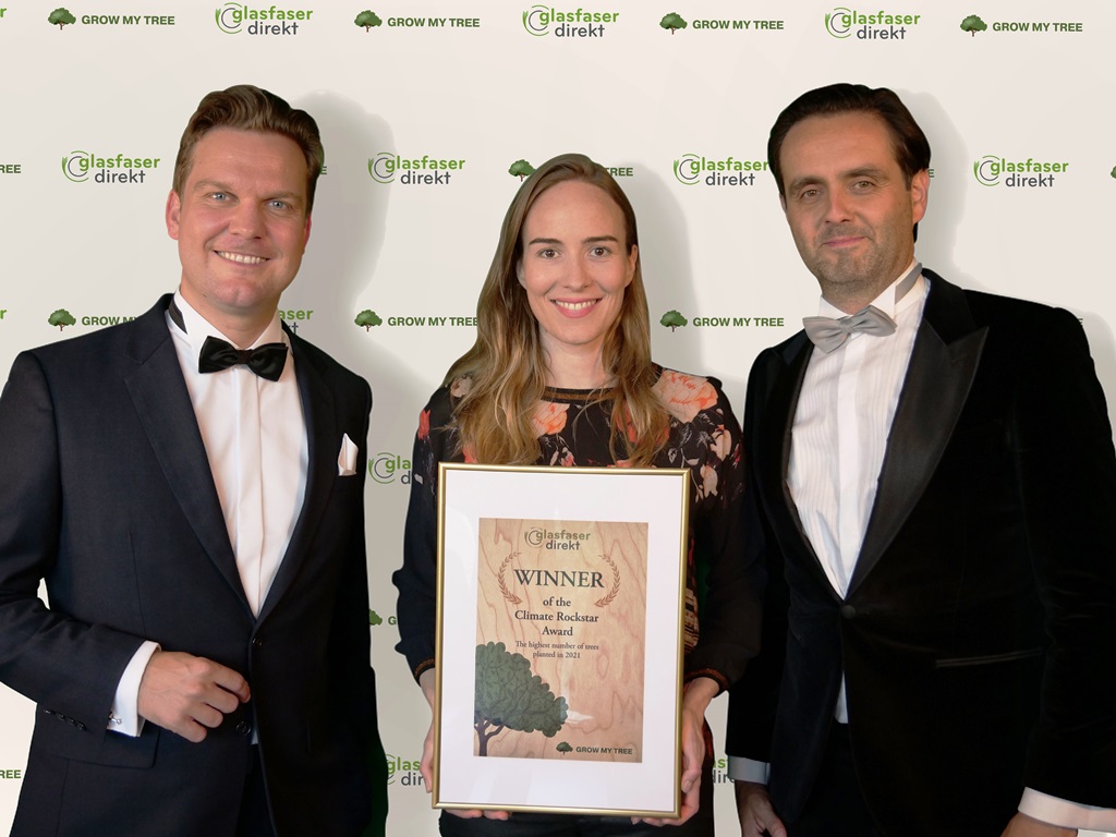 Für jeden Vertrag, Kunden und Mitarbeiter pflanzt das Unternehmen Bäume – je wertiger der Vertrag, desto größer der CO₂-Ausgleich. 40.000 Bäume seien auf diese Weise vergangenes Jahr gepflanzt worden. Dafür wurde Glasfaser Direkt mit dem Climate Rockstar Award ausgezeichnet. „Nach weniger als vier Jahren im Unternehmen, sind unsere Mitarbeiter komplett klimaneutral“, freut sich Markus Jobst und steigt am Ende unseres Gesprächs ins froschgrüne Elektro-Auto seines Unternehmens.