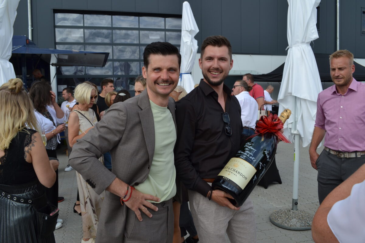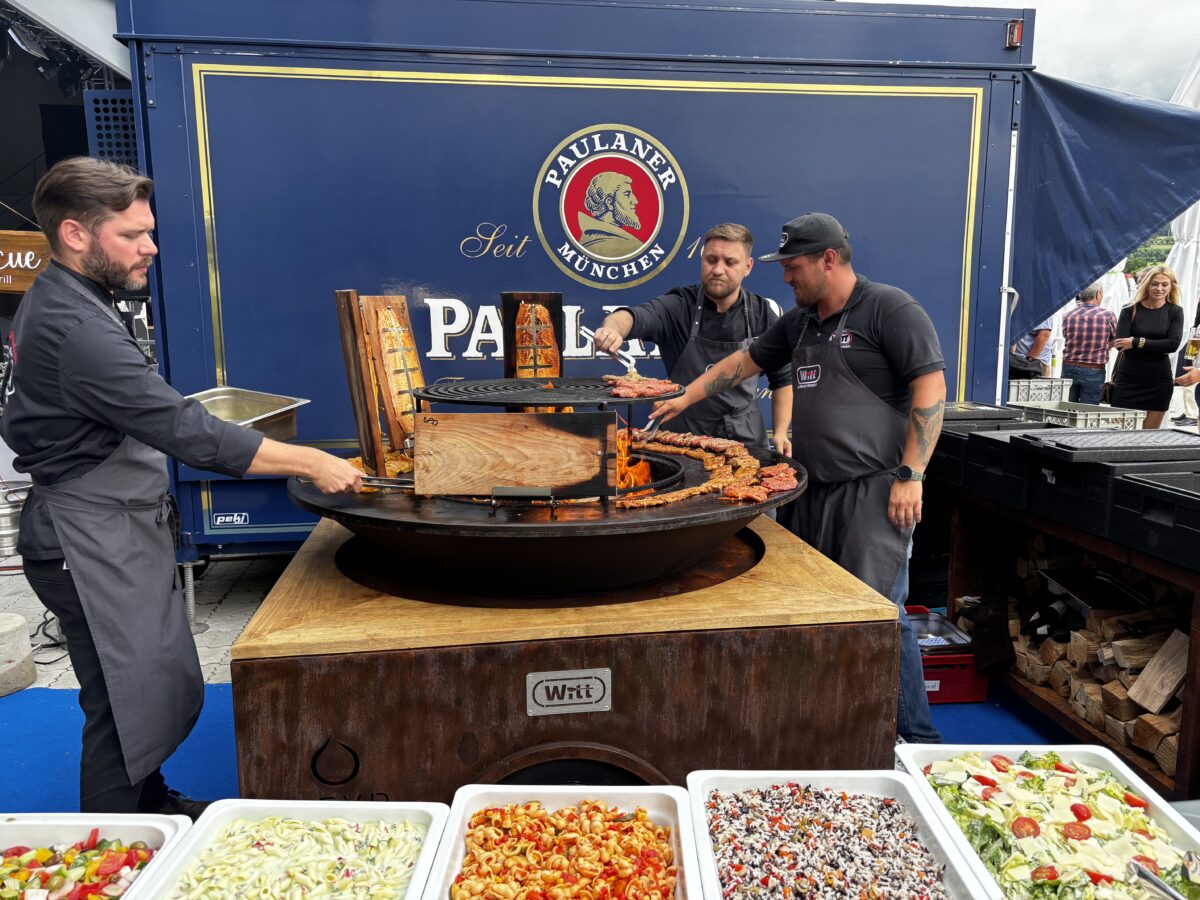 Die beiden Firmenchefs und ihr Team hatten weder Kosten noch Mühen gescheut, ein Fest der Superlative auf die Beine zu stellen. Für die kulinarischen Erlebnisse war Witt-Catering mit seinen vielen fleißigen Helferinnen und Helfern verantwortlich, für die flüssige Nahrung sorgten ein Bierwagen – in dem es auch Antialkoholisches gab – und zu späterer Stunde eine Bar mit Karibikflair. Die Neidaffer Plattler, bei denen der Junior auch schon mitmischte, begeisterten die Gäste mit akrobatischen Einlagen.