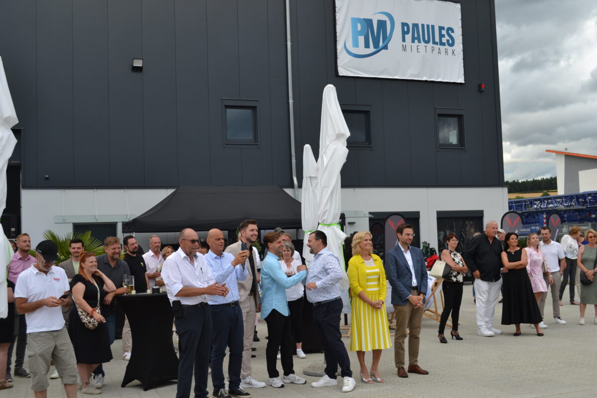 Wenn das kein Grund zum Feiern ist: Das dachten sich wohl auch die circa 300 Gäste, die am Freitag zur Einweihung der neuen Halle von “Paules Mietpark” ins Industriegebiet “Am Sand” gekommen waren.