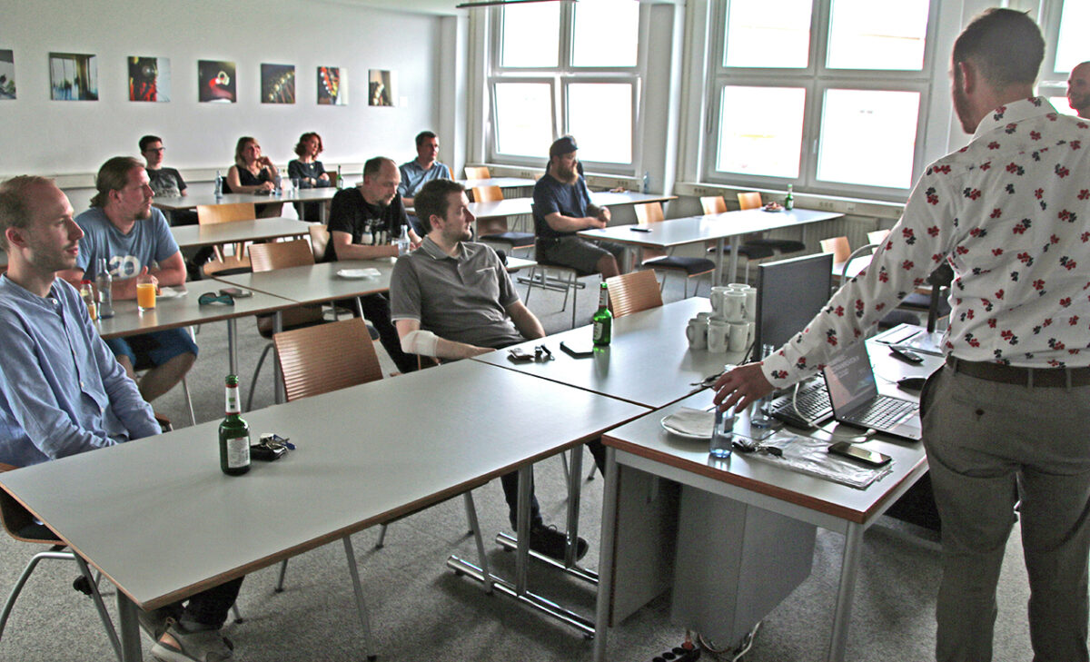 Bevor es aber in den Think-Tank der Nordoberpfälzer Softwareentwickler geht, bereiten mich Florian Rieder und Thomas Schattan, Abteilungsleiter Produktentwicklung bei Speed4Trade in Altenstadt, schonend auf die Veranstaltung vor. Denn der Weidener IHK-Chef weiß aus eigener Erfahrung: „Wenn die Jungs und Mädels da drin richtig loslegen, verstehen wir nur Bahnhof – das ist fortgeschrittene Tech-Speech.“