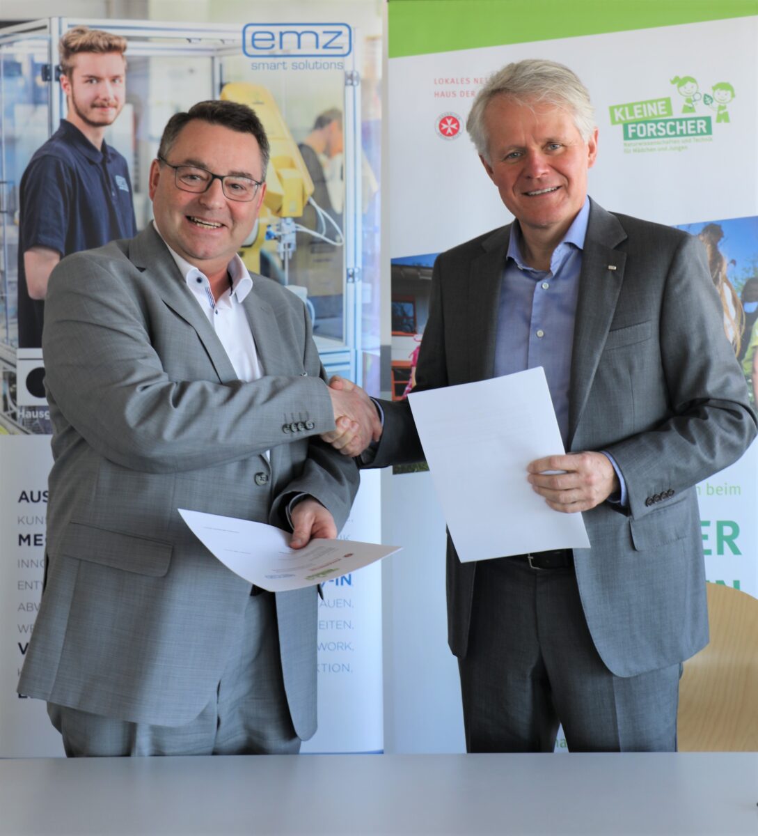 In den Räumen der emz-Hanauer GmbH unterzeichneten kürzlich emz-Geschäftsführer Thomas Hanauer und Johanniter-Regionalvorstand Martin Steinkirchner einen Kooperationsvertrag für das „Haus der kleinen Forscher“. Die gemeinnützige Stiftung engagiert sich seit 2006 bundesweit für gute frühe Bildung in den Bereichen Mathematik, Informatik, Naturwissenschaften und Technik (MINT) – mit dem Ziel, Mädchen und Jungen stark für die Zukunft zu machen und zu nachhaltigem Handeln zu befähigen.