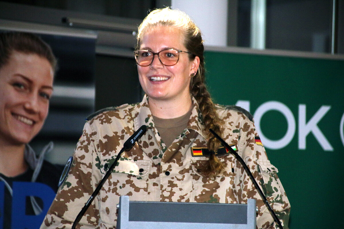 Die Frage, ob Soldaten Leistungssportler der Bundeswehr sind, hat sich Dr. Claudia Frenz, Oberstabsärztin der Bundeswehr, zuvor noch nicht gestellt. Nach 142 Tagen relativ entspannten Einsatzes in Jordanien, wo die Bedrohungslage sehr gering sei, könne sie dennoch konstatieren: „Wir sind derzeit auf drei Kontinenten, mit 3.500 Soldaten in 13 Einsätzen.“ Das erfordere ein Höchstmaß an Einsatz, hartes, tägliches Training, Spitzenleistungen auf internationalem Niveau unter psycho-physischer Anspannung.