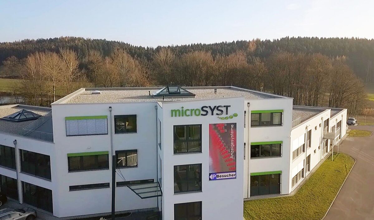 Seit Oktober 2017 hat Microsyst seinen Firmensitz mit dem neu gebauten 3.500 Quadratmeter großen Produktions- und Verwaltungsgebäude im Gewerbegebiet Neuhaus. Dominierend ist dabei die über zehn Meter hohe und 2,60 Meter breite, videofähige LED-Anzeige an der Eingangsseite des Gebäudes.