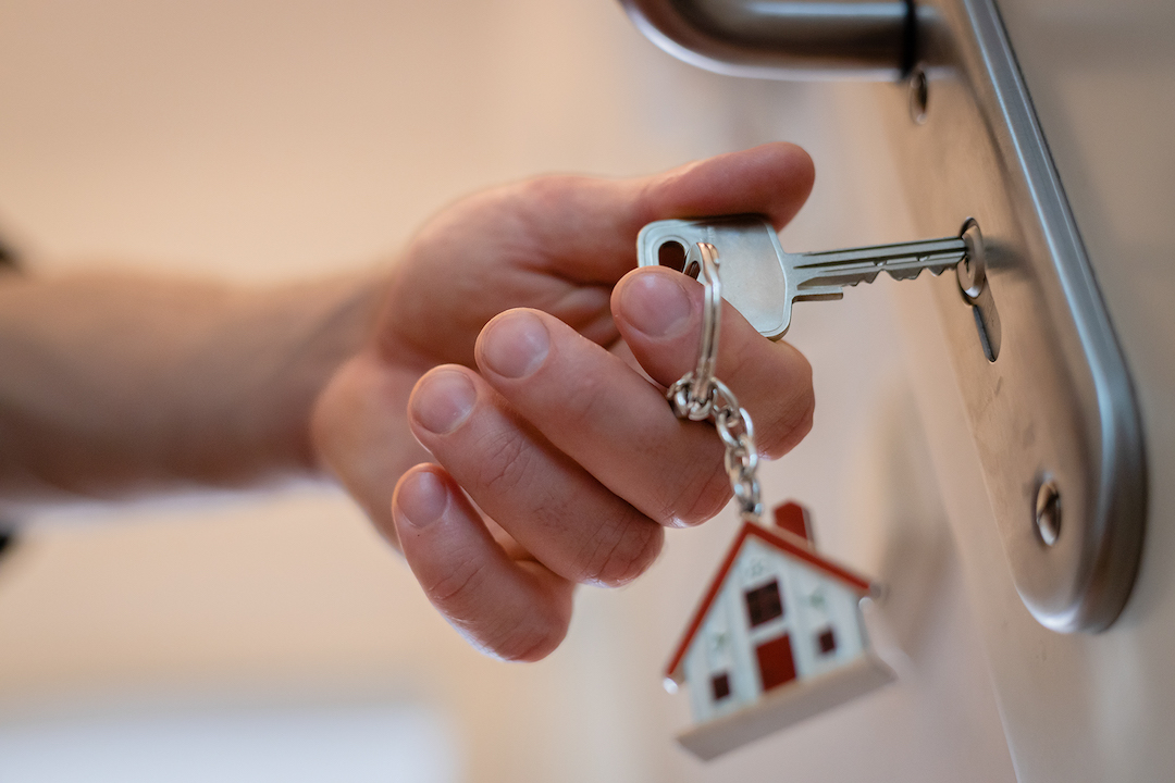 Wohnungsschlüssel sind schnell gemacht. Anders sieht’s bei Wohnungen aus: Steigende Preise beim Baumaterial und anziehende Bauzinsen lähmen den Wohnungsneubau. Die IG BAU setzt deshalb auf zwei Alternativen, mit denen sich Wohnungen sogar deutlich günstiger bauen lassen: auf den Umbau von Büros zu Wohnungen und auf Dachaufstockungen. Foto: IG Bau/Tobias Seifert