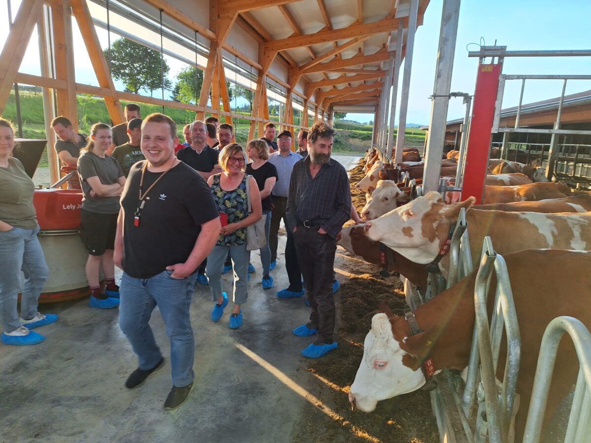 Der Milchviehbetrieb Kick in Moosbach hat kürzlich seine Türen für über 50 interessierte Landwirtinnen und Landwirte geöffnet. Ziel des Besuchs war es, den umgebauten und erweiterten Milchviehstall, der nun über zwei automatische Melksysteme (AMS) verfügt, kennenzulernen. Der Familienbetrieb, geführt von Georg Kick und seinen Söhnen Michael und Johannes Kick, setzt auf moderne Technologien und das Wohlbefinden der Tiere.