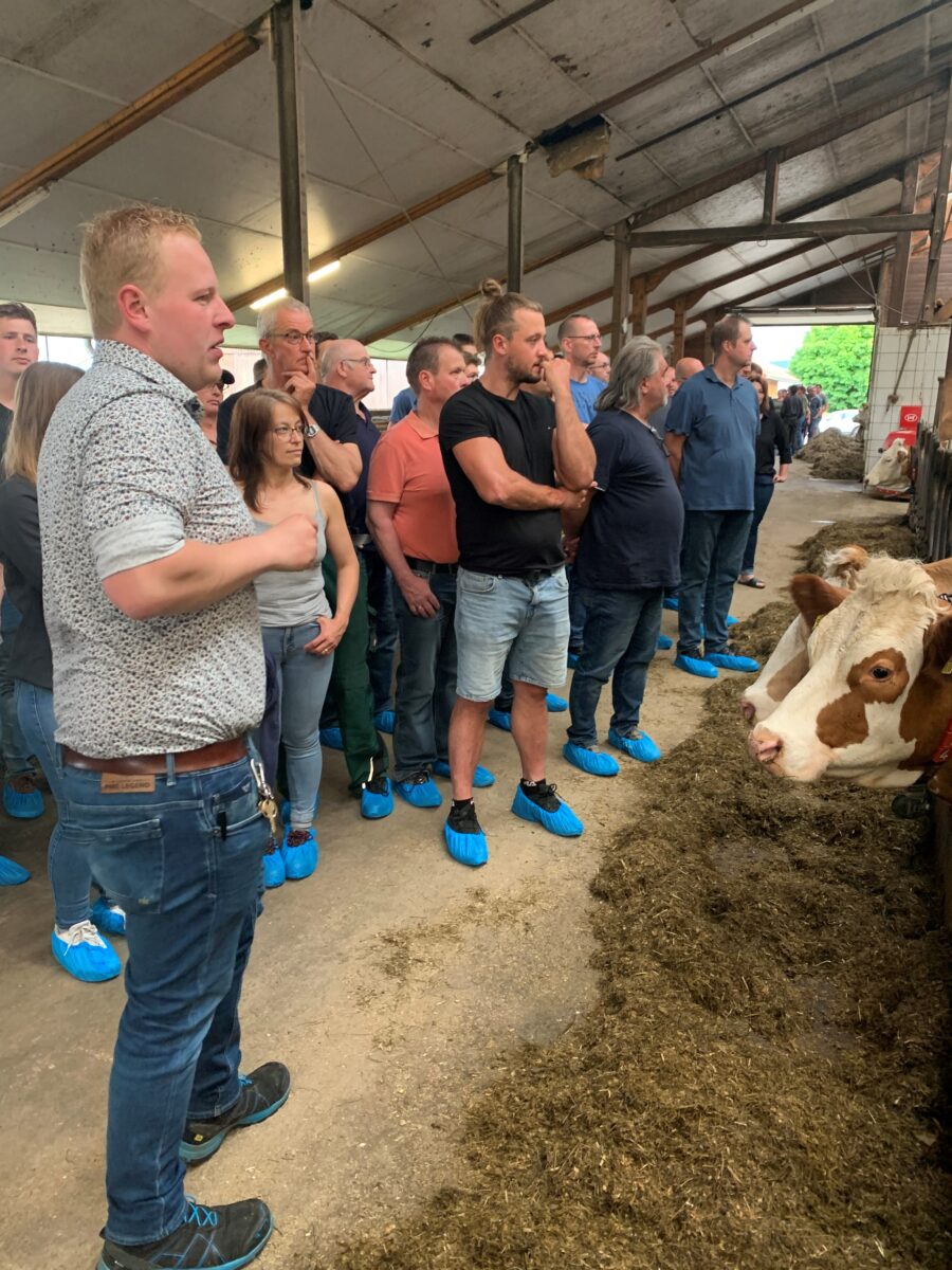 Während der Führung durch Michael und Johannes Kick konnten viele Fragen der Teilnehmer beantwortet werden. Es wurden Einblicke in die Bauphase und den laufenden Betrieb gewährt. “Wir sind sehr froh über die Arbeitserleichterung und die Lebensqualität, die wir durch den Umbau gewonnen haben”, sagte Johannes Kick. Weiterhin stellte er sein neues Hühnermobil vor, das ein weiteres Standbein des Betriebes darstellt und erst am Vortag eingetroffen war.