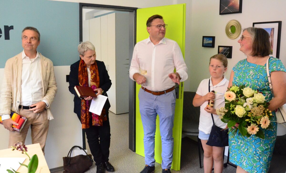 Schell erklärte den Gästen auch, dass man in der Hutschenreutherstraße nicht das klassische Start-up-Unternehmen sei, das erst ein halbes Jahr lang Aufträgen hinterherlaufen müsse. Die Auftragslage sei jetzt schon gut. “Bei uns stehen die Auftraggeber vor der Haustür.”