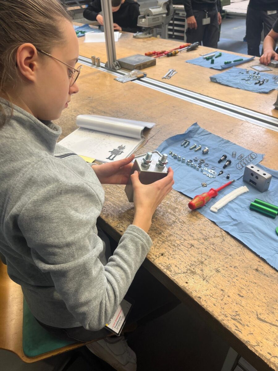 Passt ein technischer Beruf zu mir? Was genau macht eigentlich ein Elektroniker oder technischer Produktdesigner (m/w/d)? Die Camp-Teilnehmenden fanden darauf ihre ganz persönlichen Antworten. Gemeinsam mit Auszubildenden und Ausbildenden konnten sie in die Praxis eintauchen – und ihr handwerkliches sowie technisches Geschick beim Bau eines Roboters austesten. Das fertige Werkstück nahmen die Jugendlichen als Andenken mit nach Hause – und viele von ihnen nahmen auch erste konkrete Ideen für ihre berufliche Zukunft mit. „Mir ist klar geworden, dass ich mich im technischen Produktdesign nicht sehr wohl fühle, aber das Anpacken in der Werkstatt hat mir bedeutend mehr Freude bereitet“, sagt Emma (14 Jahre).