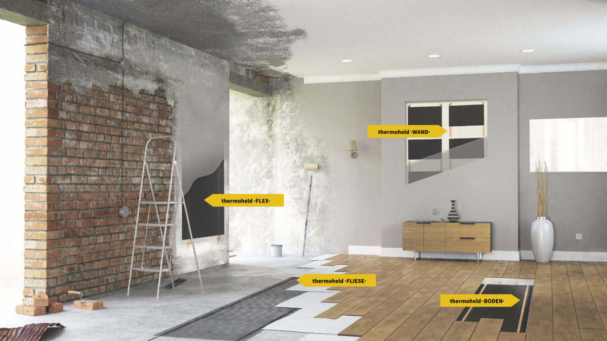 Eine einbaufertige Heiztapete zum Beispiel. Die kann wie eine normale Tapete angebracht und danach verspachtelt und überstrichen werden. Oder eine beheizbare Trockenbauwand, die sich wie ein konventionelles Produkt montieren lässt. „Die kann man auch mühelos in Schrägen installieren“, erzählt Schütz. Ideal, für Häusle-Besitzer, die ihr Dachgeschoss ausbauen wollen und eine einfache und günstige Heizlösung brauchen. Bemerkenswert: eine niedrige Spannung von 24 Volt reicht aus, um hohe Heizleistungen von bis zu 300 Watt pro Quadratmeter zu erreichen. Diese sichere Niedervolttechnik entspricht übrigens sogar der EU-Spielzeugrichtlinie.