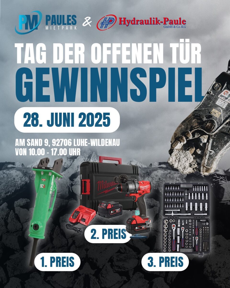 Weiter Infos gibt es auf den Seiten der Hydraulik-Paule GmbH & Co. KG und von Paules Mietpark.