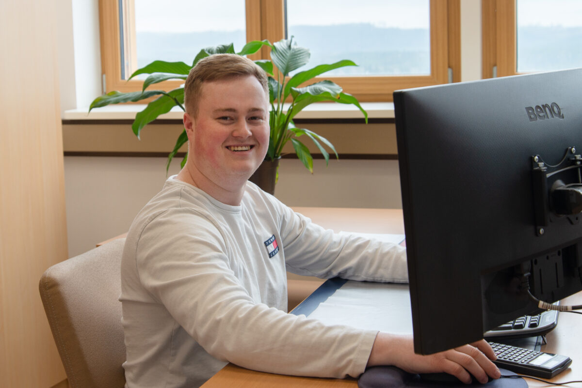 Verschiedene Abteilungen hatte auch Dominik während seiner Ausbildung durchlaufen. Während der Metallgrundausbildung absolvierte er die Azubi-Lehrwerkstatt, in der sogenannten “Nestversorgung” in der Fertigung lernte er alle Baugruppen kennen. Im Februar 2021 war seine Lehrzeit vorbei. Seitdem arbeitet er in der Abteilung Layoutierung/Projektierung und ist dort für die Projektierung der Tray-Fördertechnik zuständig. “Ich bin während meiner Ausbildungszeit immer unterstützt worden”, erzählt er. Die Ausbilder haben sich viel Zeit für ihn genommen und ihm bei der Prüfungsvorbereitung intensiv unter die Arme gegriffen.