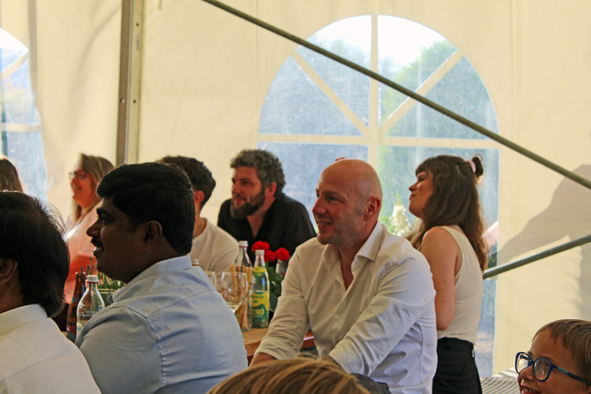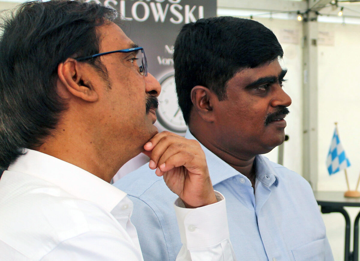 Geschäftsführer Senthil Senthilkumar und Produktionsleiter S. Syed Musthafa, die beide beim Sommerfest persönlich gratulieren: „Karl-Heinz hat uns von Anfang an großes Vertrauen entgegengebracht“, lobt Senthil den Mann, der vor 22 Jahren mit einem Businessplan im Gepäck in Indien ankam. „Das war besonders, genauso besonders ist auch seine Weitsicht in unternehmerischen Entscheidungen.“