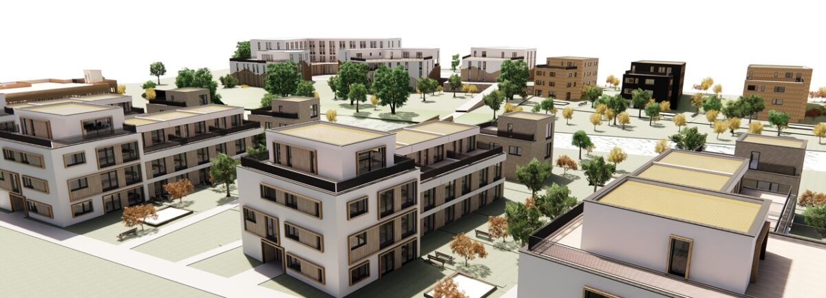 Auf einer vier Hektar großen Fläche entsteht in nachhaltiger, ökologischer Holzbauweise ein wegweisendes Wohnungsprojekt mit über 100 Wohneinheiten verschiedener Varianten wie Reihenhaus, Mehrfamilienwohnhaus, Singlewohnung, oder Stadtvillen, einem Holz-Parkhaus mit rund 85 Stellplätzen, einem Hotel mit über 50 Zimmern, einem Restaurant sowie weiteren Gewerbe- und Geschäftshäusern.