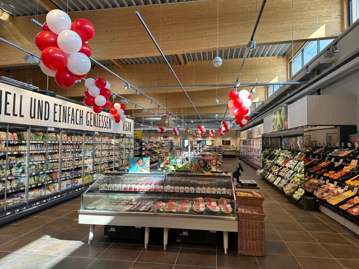 Marktmanager Timmy Bareuther und seine 32 Mitarbeiterinnen und Mitarbeiter präsentieren den Kundinnen und Kunden auf einer Fläche von rund 1500 Quadratmetern, inklusive Getränkemarkt, eine entsprechend große Auswahl. Das Sortiment umfasst über 10.000 Artikel. „Unsere Philosophie ist es, Nahversorger mit Vollsortiment zu sein“, sagt Bareuther. Es stehen über 80 Parkplätze zur Verfügung, auch für E-Mobilität ist gesorgt.