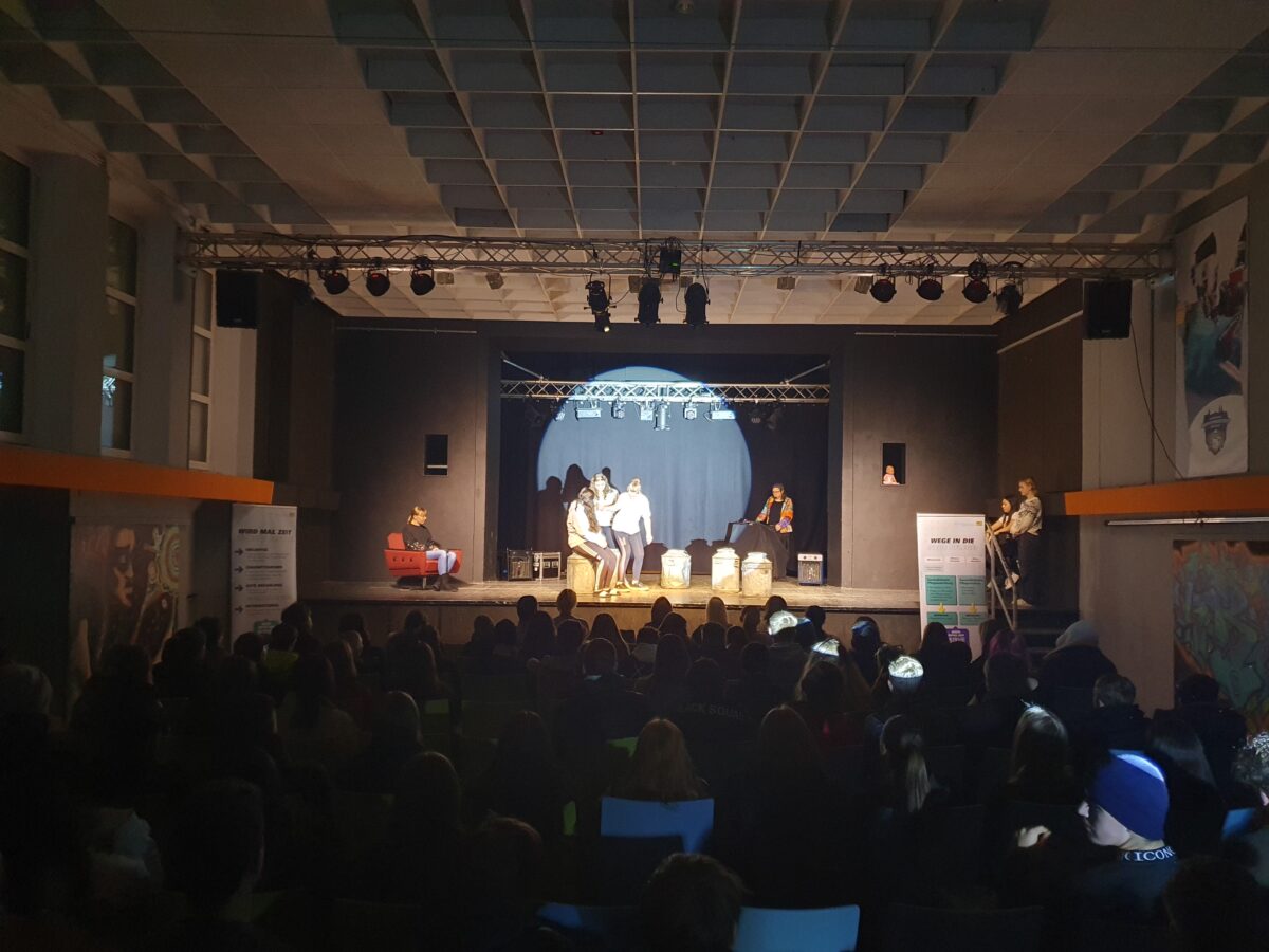 Die Agentur für Kunstdesign „Kunstdünger“ mit Theaterpädagogin Isabel Lindner und Regisseur Jean Francois Drozak brachte in Zusammenarbeit mit dem Jugendzentrum Weiden schon viele präventive und informative Theaterstücke nach Weiden. Zuletzt beschäftigte man sich mit den Themen Depression, Sucht oder auch Ernährung. Durchgeführt wird das Ganze immer als Wochenprojekt mit SchülerInnen für SchülerInnen aus Weiden.