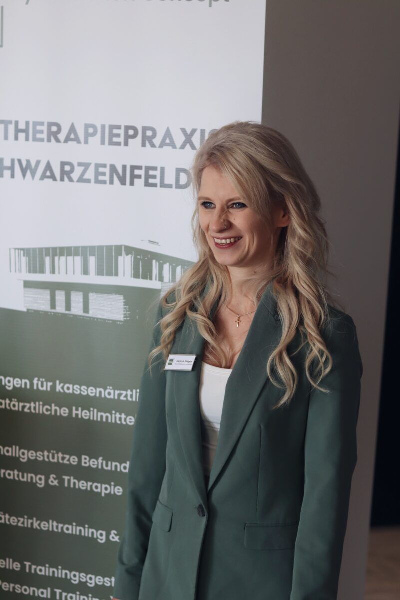 Inhaberin Stefanie Seegets hielt nach der Segnung durch Pfarrer Maximilian Moosbauer eine kurze, unterhaltsame Rede: „Die Firmen Probst Bau, Richard Kurz hier aus Schwarzenfeld und Brunold aus Schwandorf haben nicht nur Wände hingestellt, sondern mit ihrem Können einen Ort geschaffen, an dem Menschen Vertrauen in ihren Körper zurückgewinnen“, lobte die Unternehmerin handwerkliches Können. „Qualität passiert immer in der Gemeinschaft.“
