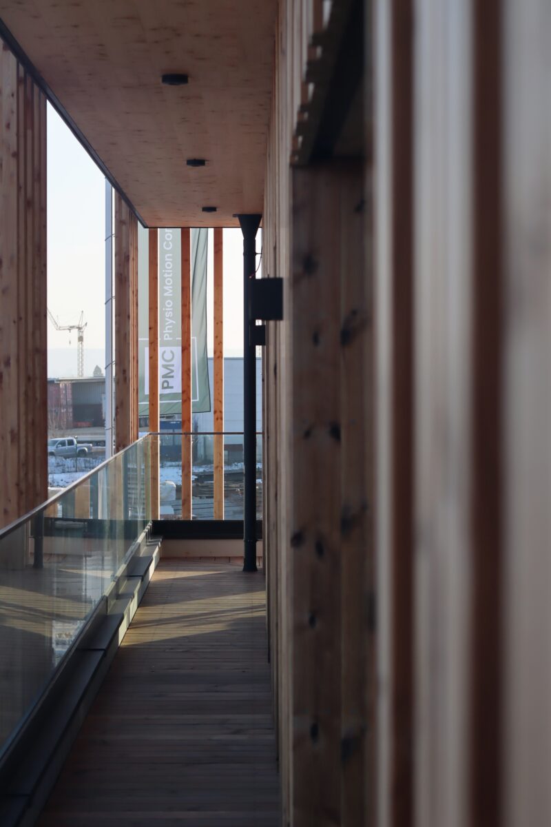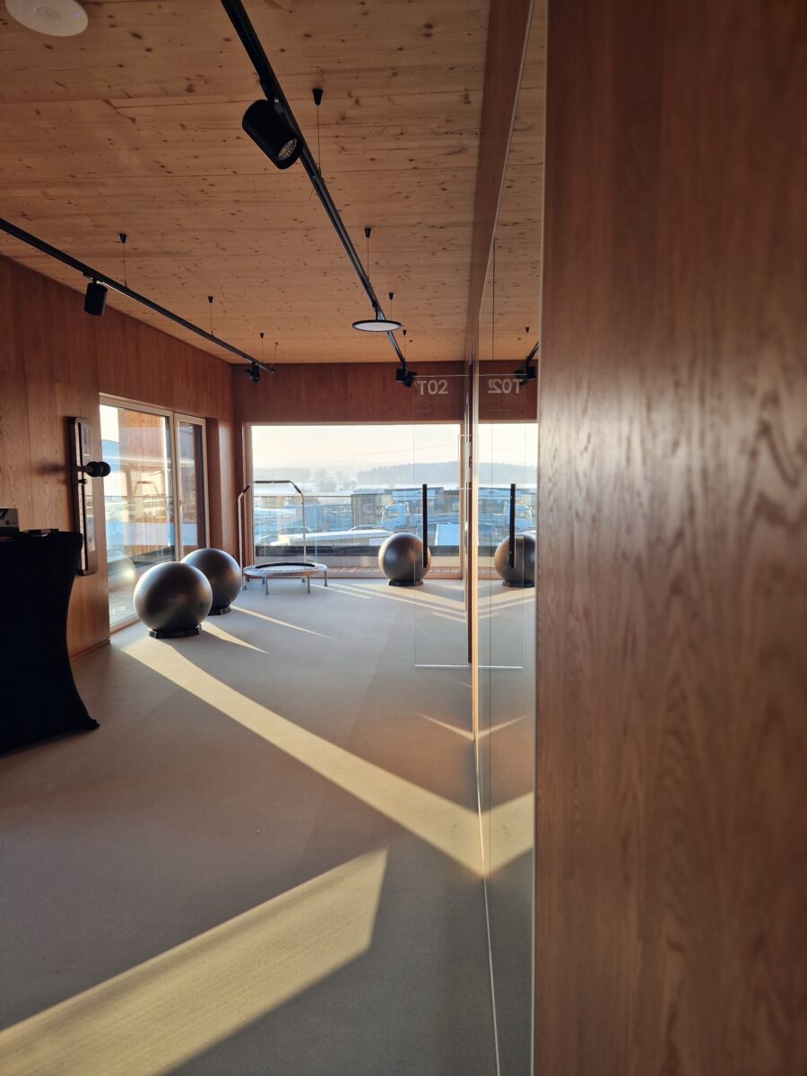 Außen Holzfassade, innen Wohnlichkeit und klare Aufteilung: Im Erdgeschoss sind der Empfang und Therapieräume für individuelle Behandlungen. Im zweiten Stock finden individuelles und gemeinsames Training an Geräten ihr Zuhause. Erster Eindruck: Einladend.