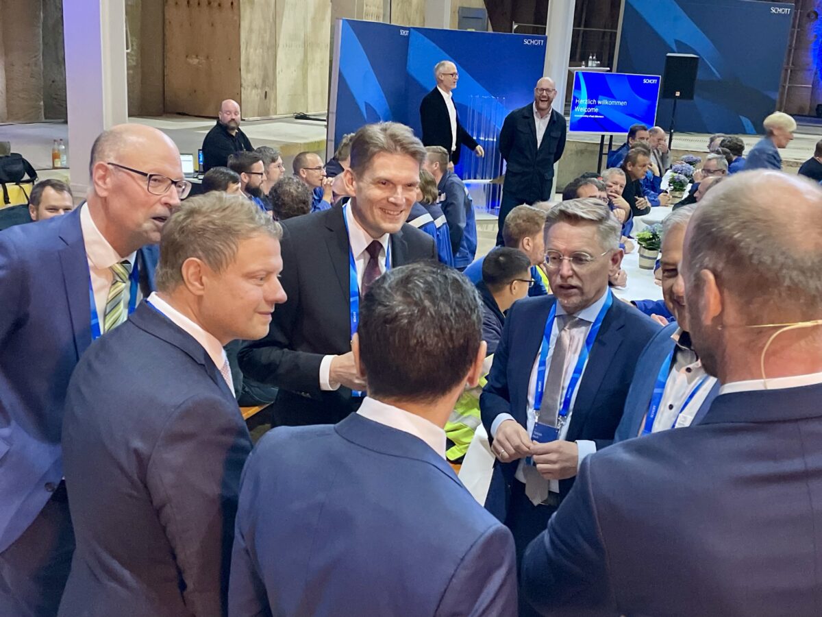 Dr. Patrick Markschläger erklärte das Produkt, das ab 2027 hier produziert wird: FIOLAX Pro OCF, ein Rohrglas, das für Spritzen, Fläschchen und Ampullen in der Pharmaindustrie verwendet wird. OCF steht für “Optimized Carbon Footprint”, also einen reduzierten CO2-Fußabdruck. Die neue Schmelzwanne senkt die Emissionen im Schmelzprozess um 80 Prozent. Gespeist wird sie zu 100 Prozent mit Grünstrom. Markschläger rechnete dem Tubing-Team hoch an, trotz der schwierigen Rahmenbedingungen “extrem hohen Einsatz” gezeigt zu haben. Der Lohn: “Ein klares Bekenntnis zum Standort.”