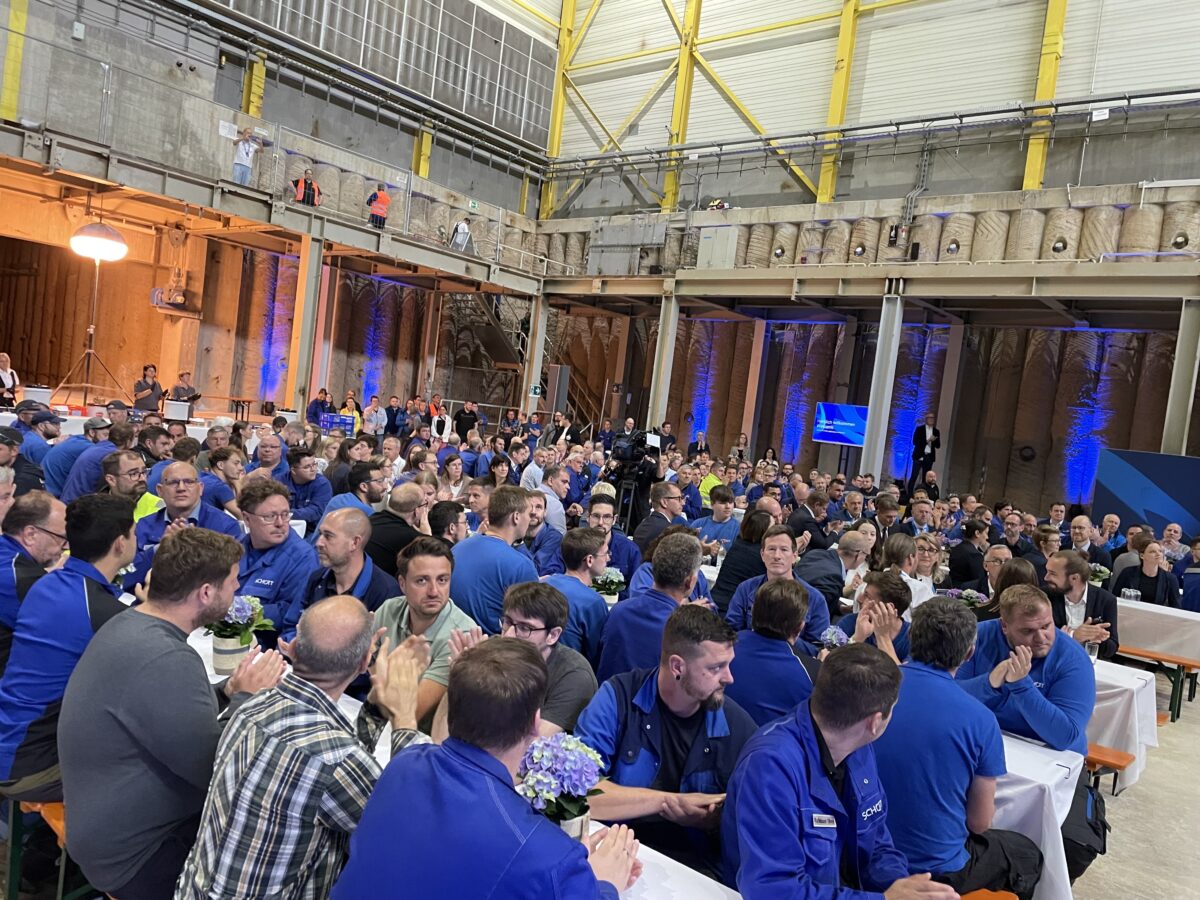Zur feierlichen Grundsteinlegung für die neue E-Wanne begrüßte Standortleiter Markus Punzmann die “Schott-Familie” an ungewöhnlichem Ort: nämlich genau dort, wo die Wanne gebaut wird. Noch ist die Halle leer, größer und höher als eine Turnhalle. Hier soll die neue elektrische Schmelzwanne (20 mal 20 mal 20 Meter) entstehen. “Heute legen wir den Grundstein für morgen”, so Punzmann: “Wir starten in eine neue Ära.”