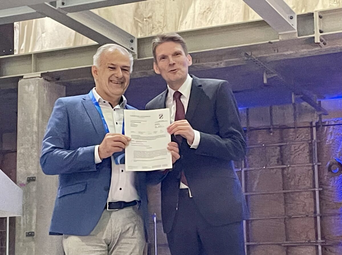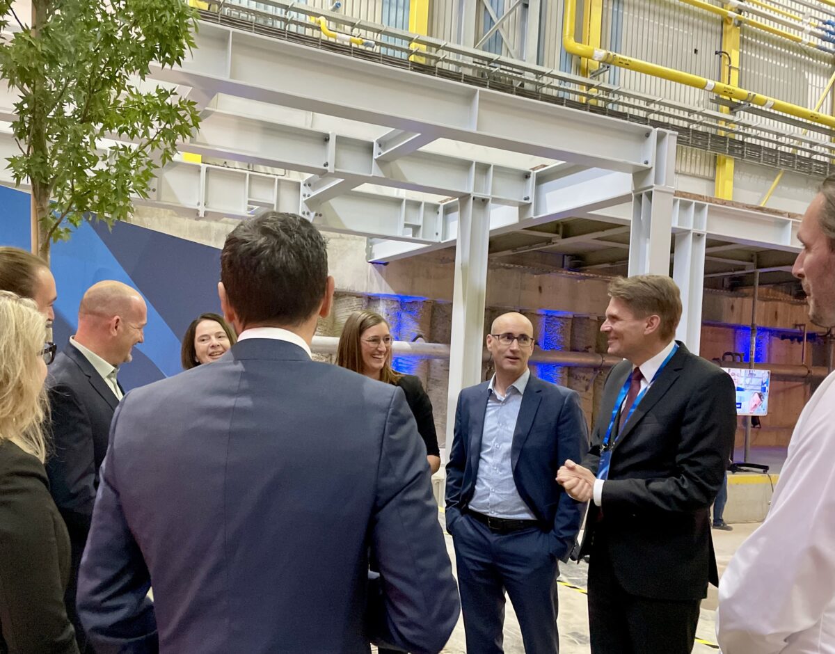 Ein technologischer Quantenspruch – und eine zukunftsweisende Millioneninvestition in den Standort Mitterteich. Das Pilotprojekt wird vom Bundesministerium für Wirtschaft und Klimaschutz aus dem Programm “Dekarbonisierung in der Industrie” gefördert. Vor Ort waren Verantwortliche des Kompetenzzentrums Klimaschutz in energieintensiven Industrien: Dr. Ricarda Tänzer-von Daake und Bianca Dornisch-Bund.