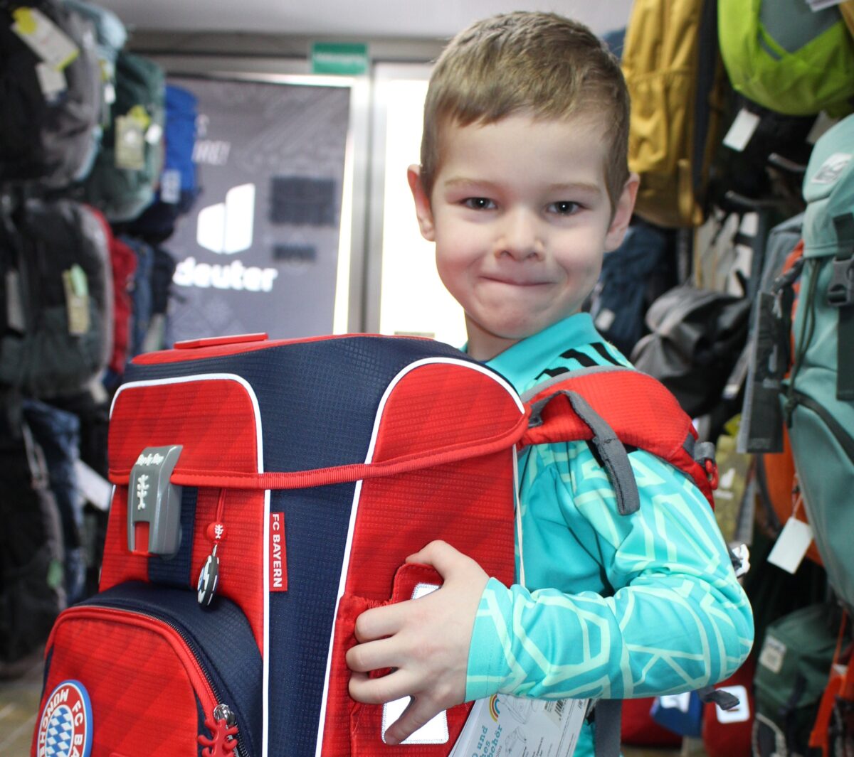Nach rund einstündiger Suche hat er seinen Wunschranzen entdeckt – einen FC Bayern München-Tornister. Der Bub strahlt übers ganze Gesichterl. Kein Wunder: Er ist Fan des deutschen Fußball-Rekordmeisters, und trägt das (Kindergrößen-)Trikot von Keeper Manuel Neuer. Voller Stolz trägt er seine “Mia-san-mia”-Errungenschaft zur Kasse. Die Patentante freut sich mit ihm und zahlt.