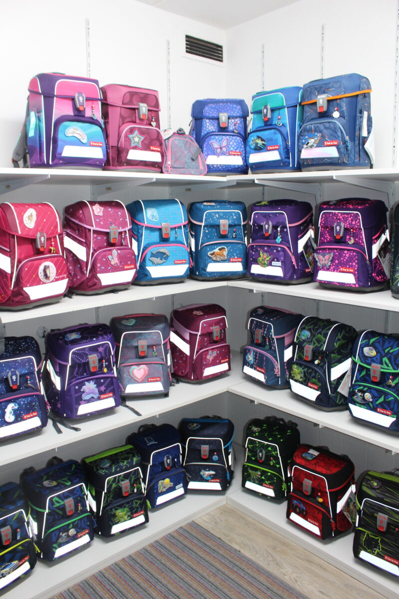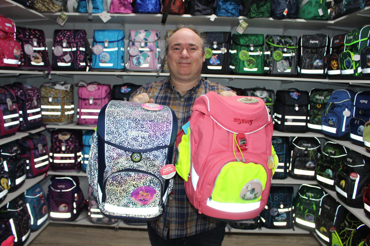 “Wir haben bestimmt das größte Sortiment in der Region”, erläutert Geschäftsführer Holger Schmidt. Alle gängigen Marken stehen in den Regalen: Step by Step, Scout, Ergobag, Lässig, Mc Neill oder Der-Die-Das. Sechs angesagte Hersteller, mit 19 verschiedenen Serien und fast 100 verschiedenen Motiven – mehr geht fast nicht. Ob Pferde, Polizeiauto, Bagger, Delphine oder verschiedene Karomuster – kein Kinderwunsch nach tollen Motiven bleibt unerfüllt. Den Schulranzen gibts mit Blinklichtern und wer tiefer in die Tasche greifen will, sogar mit einem LED-Display. Und es muss nicht immer ein Tornister sein. Es gibt auch Rucksack-Varianten. Und wer möchte, kann natürlich die dazu passenden Accessoires, wie Geldbeutel, Schirme, Sporttaschen oder die Schultüte gleich mitkaufen.